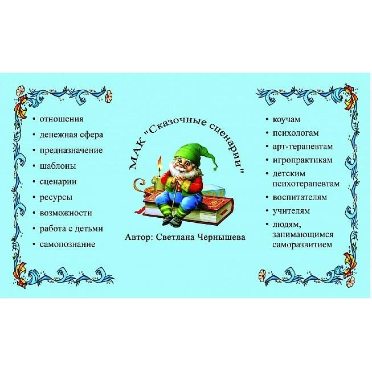 Ця колода створена для роботи з широким спектром запитів із використанням казкових архетипів, асоціацій та сюжетів. Адже казка - це брама в глибини нашої підсвідомості, з її допомогою можна багато чого зрозуміти, усвідомити, змінити, побачити ресурси та можливості. МАК «Казкові сценарії» є сюжетами найпопулярніших казкових історій. Завдяки цьому кожна картинка наповнена не тільки застиглим на ній сюжетом, вона наділена цілою історією, характером, долею даного персонажа, що відкриває безліч різних контекстів і величезне поле для інтерпретацій і роботи з казковими метафорами. Родзинкою колоди є те, що вона містить не тільки карти — зображення відомих казок, а й три додаткові колоди: - колоду зі словами та виразами - ресурсну колоду-рада «Підказка від казки» - колоду з описом 21 авторської техніки роботи Колода чудово підійде в роботі коучу, арт-терапевту, психологу, ігропрактику, дитячому психологу, вчителю та людям, які займаються саморозвитком та самодослідженням. Колода проста у використанні, вона підійде не лише фахівцям з роботи з МАК, а й новачкам для роботи із самим собою та іншими людьми. Може використовуватися в трансформаційних іграх, казкотерапії, арт-терапії, роботі та іграх з дітьми. Класифікація колоди - коучингова/сюжетна/казкова/ресурсна Склад: · 45 сюжетних карт «Казкові сценарії» із зображеннями розміром 70х70 мм, · 21 карта зі словами та виразами розміром 90х90 мм, · 21 карта «Техніки для роботи» розміром 90х90 мм, · 45 карт «Підказка від казки» розміром 70х25 мм, · Інструкція до колоди, · Дизайнерська коробочка Автор: Світлана Чернишова