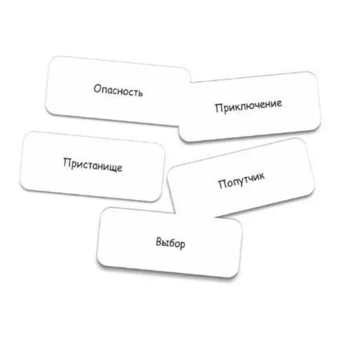 80 фотокартокавтострад, шосе, доріг, стежок і зовсім бездоріжжя;32 маленькі картки зі словами та словосполученнями;Інструкція. |