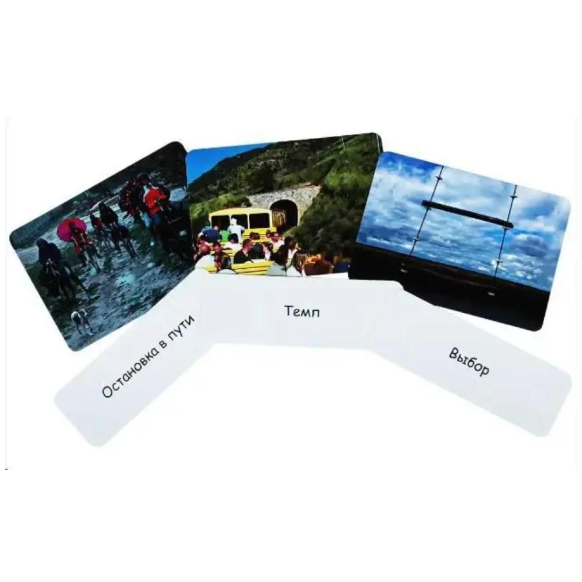 “Шляхи-дороги“ - оригінальний набір “динамічних“ карт, який дає можливість працювати з образами руху, устремління, швидкості, досягнення мети, заборон та ідеалів. Найбільш продуктивно його використання у ситуаціях, коли клієнт переживає кризу, стоїть перед необхідністю вибору, починає якусь діяльність, формулює нові цілі тощо. Нам звично думати про життя як про шлях і пов“язані з дорогою картинки в кожному з нас відгукуються переживаннями. З дорогою пов“язано безліч образів: гальмування, раптові зупинки, небезпечні повороти, зустрічі та розставання, вибір шляху, попутники, відокремлення від батьків, дорослішання, здобуття самостійності. Незважаючи на свої чудові особливості, метафоричні карти – не ліки, а інструмент дослідження та психотерапії. Самі собою вони дають відповідей, але допомагають ставити змістовні, актуальні питання. Психологічний сенс роботи з картами полягає в тому, що людина виражає своє ставлення до наявного на карті зображення, аналізує асоціації, що виникають, співвідносить з переживаннями, спогадами, що актуалізуються. Карти можна вибирати як довільно (маючи можливість розглянути зображення), так і наосліп (витягуючи їх навмання). Можна також співвідносити зображення з вербальним матеріалом: давати картинці назву довільно або знаходити відповідну карту зі словом з набору. Все це – інструмент роботи практичного психолога, який називається метафоричними картами. Карти можуть використовуватися в консультуванні, психотерапії, коучінгу, у груповій та індивідуальній роботі з дітьми та дорослими. Докладно про правила, стратегії та техніки застосування метафоричних карт у роботі психолога написано у книзі Галини Кац та Катерини Мухаматуліної «Метафоричні карти. Керівництво психолога».