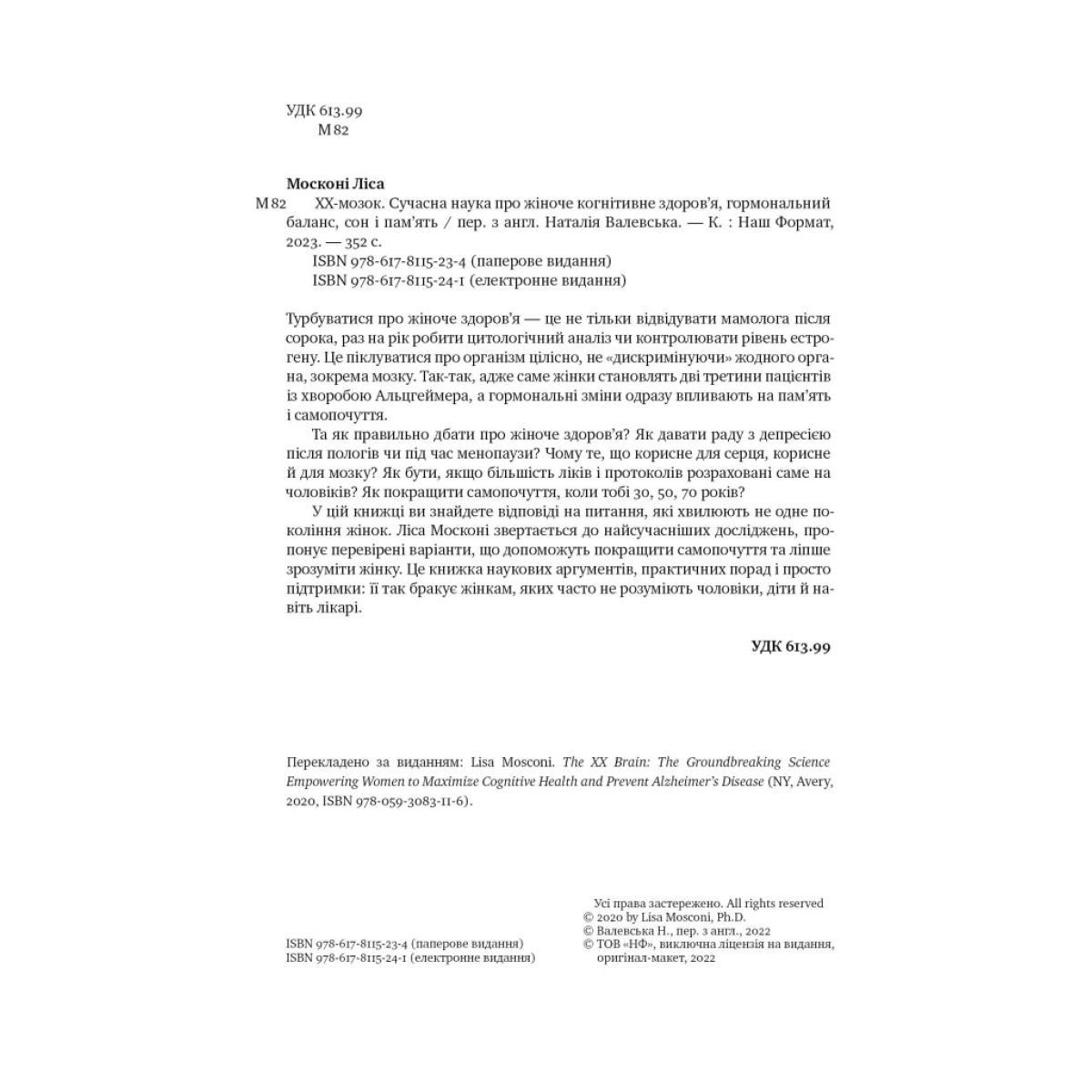 ХХ-мозок. Сучасна наука про жіноче когнітивне здоров’я, гормональний баланс, сон і пам“ять. Ліса Москоні