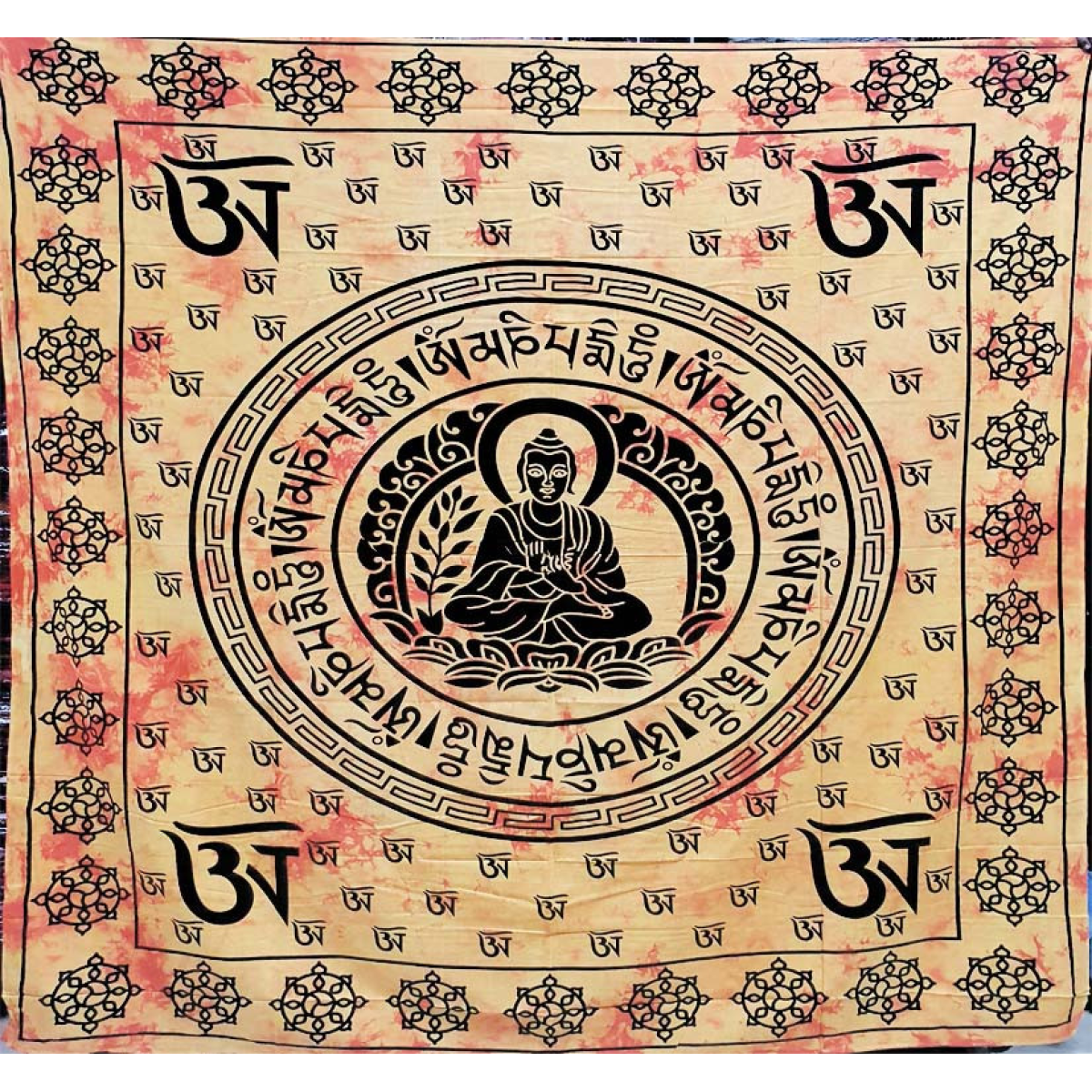 Покривало двоспальне Будда санскрит жовте
