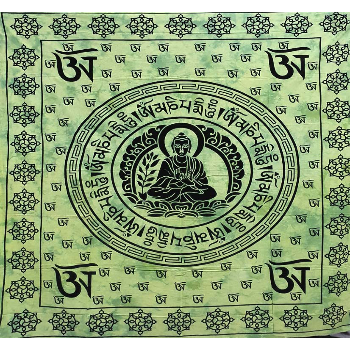 Покривало двоспальне Будда санскрит салатове