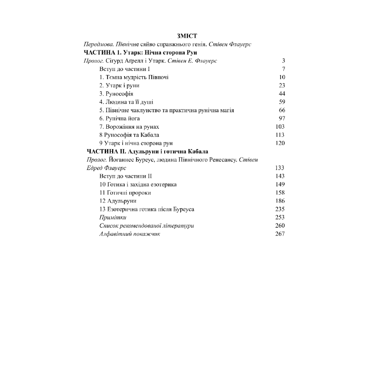 “На Темній Стороні Рун: Утарк, Адульруни та Готична Кабала” є вступом до рунософії, мудрості рун і практичної рунічної магії. Руни – це динамічні символи, які характеризують приховані сили. Зовнішні форми рун змінювалися протягом історії, але принципи, які вони символізують, сьогодні майже такі ж, як і в давньоскандинавські часи. Ця книга не претендує на історичний опис рун або рунічної магії. Книга пропонує вступ до рунічної магії, яка побудована навколо практичної роботи з рунами в сучасному світі. Однак автор прагне до того, щоб рунософія в цій книзі була глибоко вкорінена в історичній скандинавській магії. Розкриваючи темний бік скандинавських рунічних каменів, прихований під їхньою традиційною інтерпретацією, шведський вчений і рунолог Томас Карлссон досліджує рунічні роботи шведського містика і рунолога Йоганнеса Буреуса (1568-1652) і професора Сіґурда Аґрелла (1881-1937), які присвятили своє життя розкриттю таємних способів використання рун, прихованих від усіх, окрім вищих посвячених. Книга “На Темній Стороні Рун: Утарк, Адульруни та Готична Кабала” розкриває окультну мудрість і багатовимірні пласти значень, приховані в скандинавських рунічних каменях. Томас Карлсссон досліджує практику системи ворожіння Утарк, закодовану в традиційній екзотичній системі читання рун Футарк. Він простежує зв’язок рунічної традиції з нумерологією, каббалою, алхімією, готикою та магією сигілів. Автор пояснює багатовимірне значення кожної руни з точки зору Утарка, їхній зв’язок з дев’ятьма світами скандинавської космогонії, а також магічну силу рунічних рядів і трьох рунічних груп еттів. Він детально описує, як створювати власні магічно заряджені руни, спрямовувати та активувати силу рун, а також використовувати їх для рунічної медитації, ворожіння, магії сигілів, ґальдрів (пісень сили) та рунічної йоги. Карлссон також досліджує таємні виміри 15 “благородних” рун, адульрун, ґрунтуючись на теоріях Йоганнеса Буреуса. Карлссон пояснює духовну систему ініціації Буреуса, готичну Кабалу, розкриваючи зв’язок між давньоскандинавською мудрістю і Кабалою. Охоплюючи не лише рунічні практики, у книзі “На Темній Стороні Рун: Утарк, Адульруни та Готична Кабала” Карлссон досліджує темний або нічний бік рун, надаючи вичерпний посібник з норвезької духовності та стародавнього духовного містицизму Одіна.