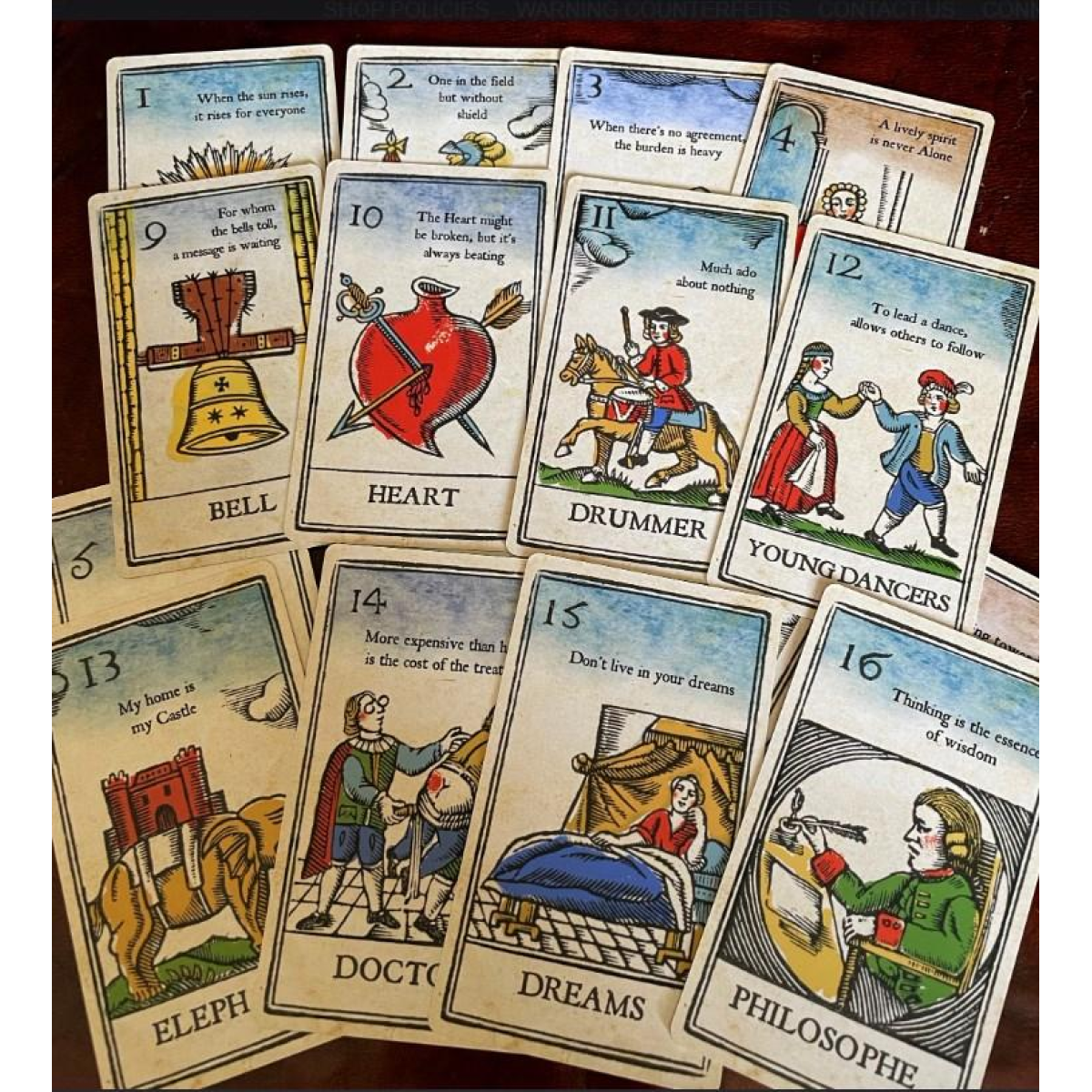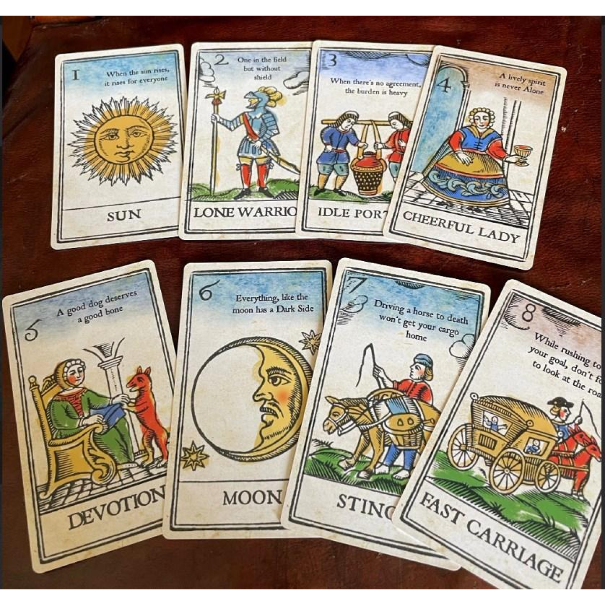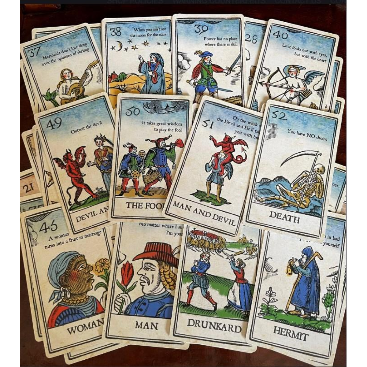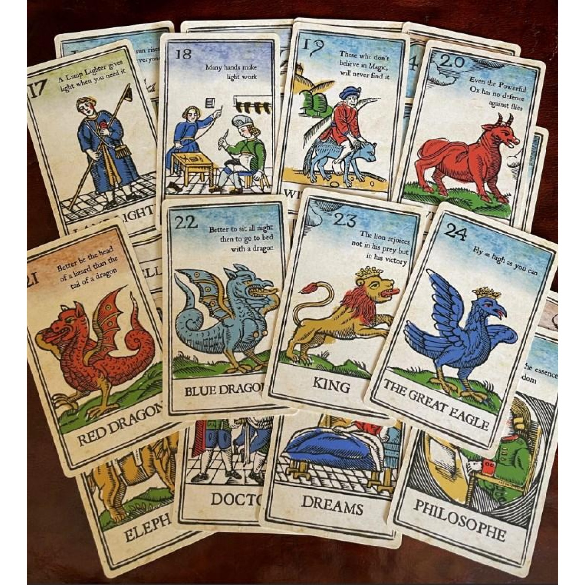 Ласкаво просимо до чарівного світу Travel Pocket Oracle, інструменту для ворожіння, який об’єднує образи людей, тварин, планет і алегоричних персонажів, щоб запропонувати глибоке розуміння та настанови. На відміну від традиційних колод Таро, Карти Оракула охоплюють різноманітний спектр символів, що дозволяє розкрити багатий гобелен значень. Кожна карта є порталом у сферу, де зливаються інтуїція та символіка, запрошуючи шукачів досліджувати глибини своєї підсвідомості та з’єднуватися з універсальними енергіями. Завдяки яскравому гобелену зображень і повідомлень, написаних на них, ці картки розповідають свою історію та пропонують унікальну та глибоко особисту подорож до самопізнання. Дорожній кишеньковий оракул, натхненний бортом із 48 алегоричними фігурами Хуана Ллоренса, бл. 1860–70, Іспанія. Ми додали кілька інших карток, щоб збільшити кількість карток до 52. В основі кожної картки лежить мова символів і архетипів, які перевершують вимовлені слова. Символіка, закладена в цих картках, у кожному зображенні несе шари значення, які можна інтерпретувати, щоб пролити світло на особисті дилеми, життєві шляхи та людську психіку. Повідомлення на картках допоможе вам налаштувати вібрацію прихованого керівництва. Ці повідомлення зазвичай служать як підтвердження або поради. Хоча наш світ різко змінився з часів стародавнього ворожіння, привабливість карт Оракула залишається незмінною. Незалежно від того, чи використовуються вони для самоаналізу, медитації чи пошуку вказівок, карти Oracle продовжують надавати унікальний канал для доступу до мудрості Всесвіту. Читаючи карти, ви можете керуватися власною інтуїцією, трактувати їх як завгодно. Жорстких правил немає – дотримуйтесь свого серця. _______________________ Колода чудово підходить для короткотермінових запитань, які вимагають від вас внутрішніх роздумів і душевного пошуку, щоб прояснити щось конкретне або дати вказівки. Найкраще для абсолютних духовних новачків, яким просто потрібен простий і легкий спосіб поставити собі цілі чи твердження на день, тиждень чи місяць. Але якщо ви вже знайомі з картками Oracle, ви можете використовувати традиційні розкиди карток, залежно від того, наскільки глибоко ви хочете розглянути певну проблему. Карти Оракула чудово включати в усі духовні практики.