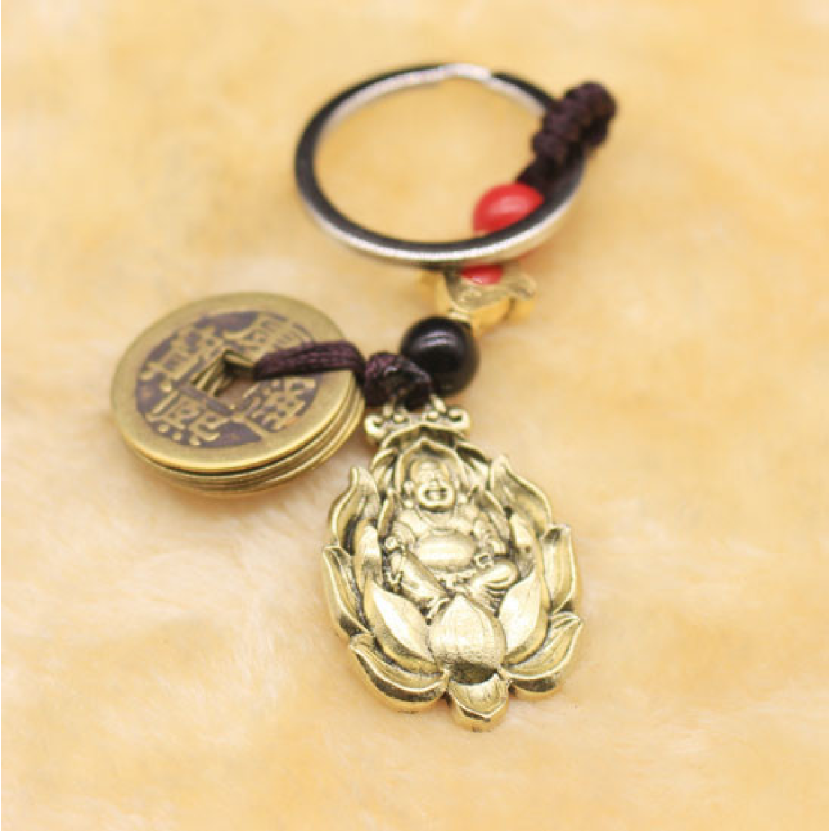 Брелок Фен Шуй Хотей у лотосі + 5 монет