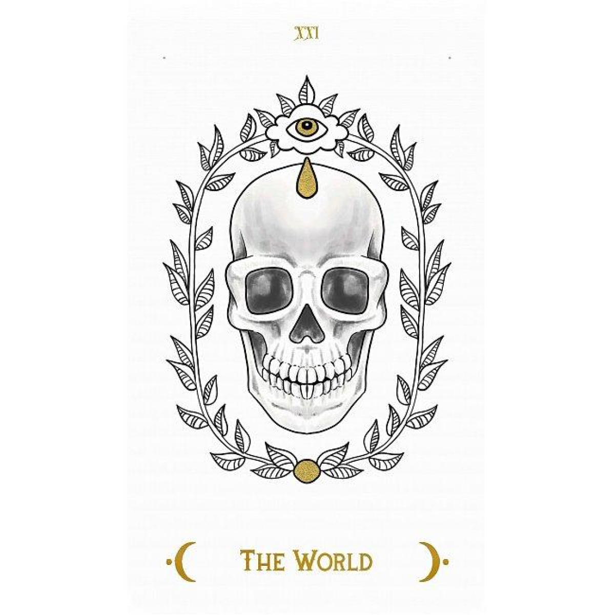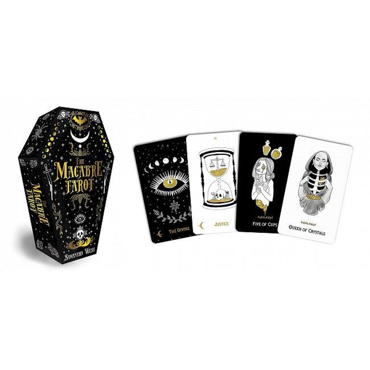 Воістину макабричний дизайн – колода Таро у формі труни! Macabre Tarot спокушає вас відвернутися від світла та прийняти темряву. Наслідуючи традиційну структуру Таро, колода розглядає темні сторони карт і закликає вас прийняти все те моторошне, що ховається в тіні. Вас підштовхнуть у кролячу нору вашої власної психіки і змусять зустрітися віч-на-віч зі своїми похмурими думками. Ця унікальна колода заснована на традиційній системі Райдера Уейта, але з такими мастями, як Кристали, Кубки, Кістки та Кинджали. Будьте попереджені: ця колода не для легковажних чи слабонервних. Чи готові ви прийняти все, що живе у тіні? Крокуйте в темряву і відпустіть свої страхи. Макабр Таро - це колода, призначена для роботи з тінню, дослідження тих сторін себе, які ви вважали б за краще, щоб інші не бачили. Багато людей, які працюють із тінню, дозволяють собі безпечний простір для дослідження власної темряви. Таро - чудовий інструмент для того, щоб відкрити свою тінь, оскільки воно ставить вам питання, на які ви інакше не подумали б. Робота з тінню відбувається, коли ви перестаєте відганяти темні, нав“язливі думки, породжені гнівом, смутком і огидою, які прокрадуються до вас, коли ви намагаєтеся заснути вночі, і приділяєте час тому, щоб познайомитися з ними ближче. Пізнання свого істинного, справжнього “я“ можливе лише тоді, коли ви працюєте над розумінням усіх своїх сторін. Цю колоду Таро можна читати нескінченним кількістю способів, тому важливо вивчити безліч напрямів, як вибрати конкретний шлях. Хоча The Macabre Tarot було розроблено з урахуванням традиційної структури з 78 карт, були внесені деякі зміни, найбільш помітним з яких є усунення гендерної бінарності, що обмежує. Усі ґендерні карти були перейменовані, проте вони зберегли свої початкові значення.