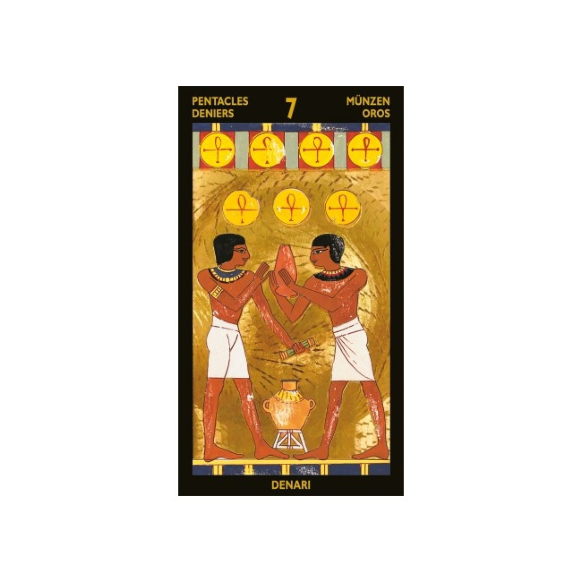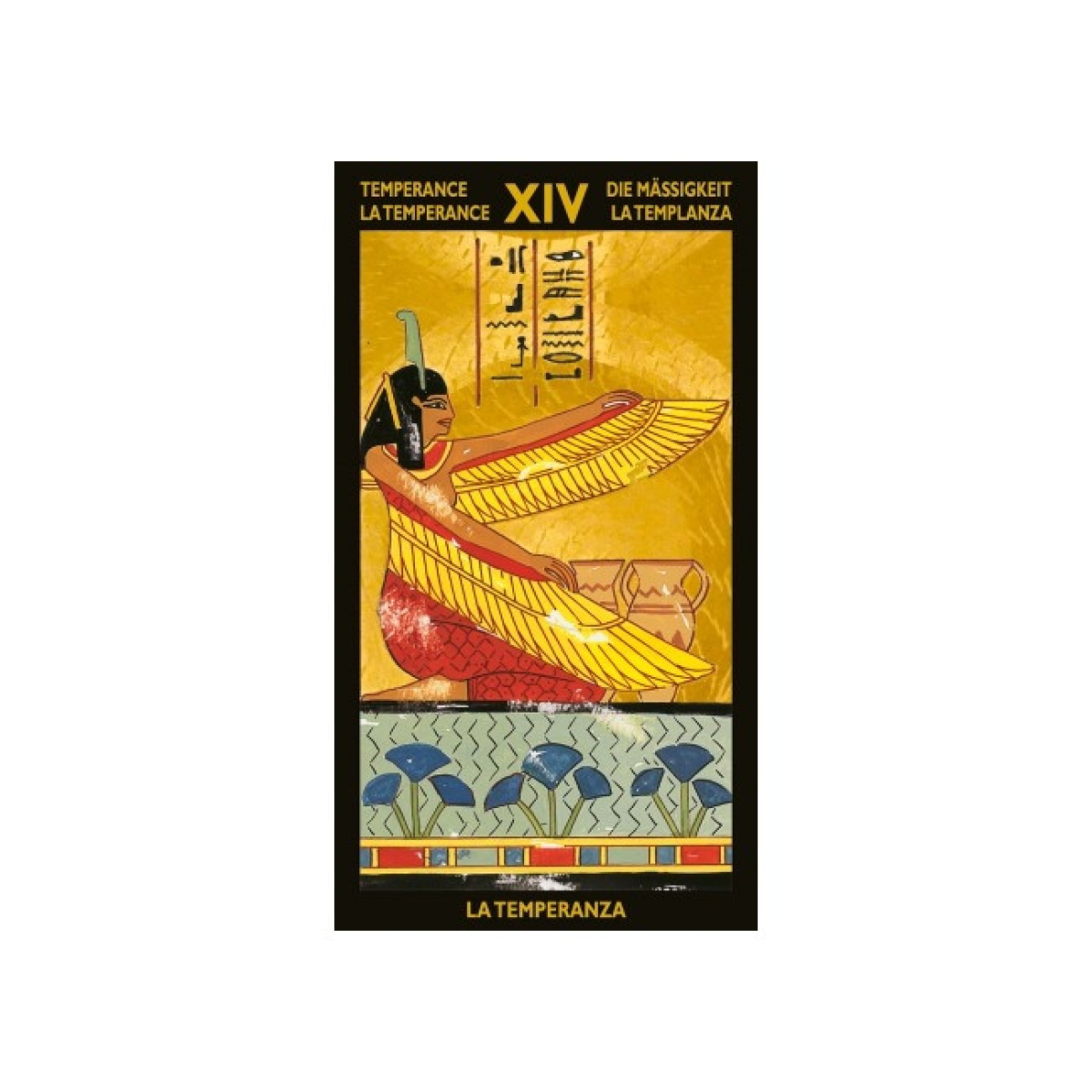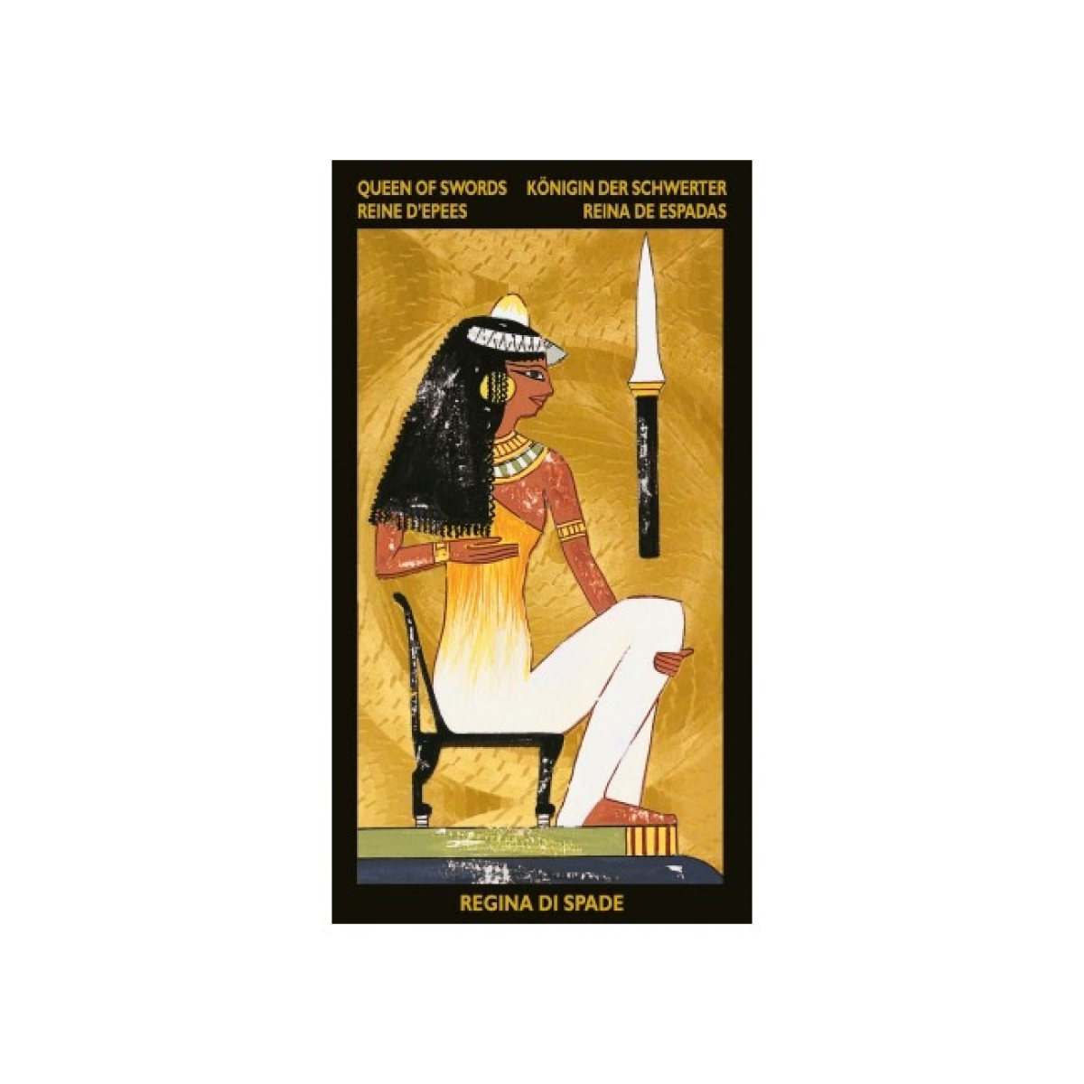 Карти англійською мовою, виготовлені з картону з двостороннім покриттям, лакове покриття. Друк золотою фольгою. Багатомовний посібник (російська, англійська, німецька, італійська, французька, іспанська) містить розклад та коротку інтерпретацію кожної карти. Прекрасна Нефертарі була старшою дружиною Рамзеса II, єгипетського фараона XIX династії. Рамзес II правив країною близько 66 років (1290-1224 рр. до н.е.) і вважався одним з найвеличніших правителів Єгипту. Нефертарі була свідком активного розширення єгипетських територій, проведеного її чоловіком, і в той період історії вона відігравала винятково активну роль у світському управлінні країною. Рамзес II боготворив її, називаючи Царицею Краси, Центром Похвал, Солодкістю Любові. Фараон Рамзес II прославився не тільки великими військовими походами, але й грандіозним будівництвом, зокрема палаців і храмів. На березі величного Нілу, в 150 метрах на північ від Абу-Сімбела, він побудував чудовий храм, прикрашений барельєфами і фресками, присвятивши його Нефертарі, і коли вона померла, наказав поховати її там. Гробниця збереглась практично недоторканою до наших днів. На фресках погребальної камери і в предметах, належать дружині фараона і за традицією супроводжували її у загробний світ, були збережені основні цінності культури Єгипту, його чарівність і таємниця. Таро Нефертарі пропонує шанувальникам символічну систему, що дозволяє проникнути в світ, який колись був так дорогий Нефертарі, Світлу Єгипту, прекрасній жінці, що стала чудовим символом давньої цивілізації. Облите гарячим золотом Сонце, Амон-Ра, якому вшановували давні єгиптяни, карти Таро зберігають його тепло і енергію.