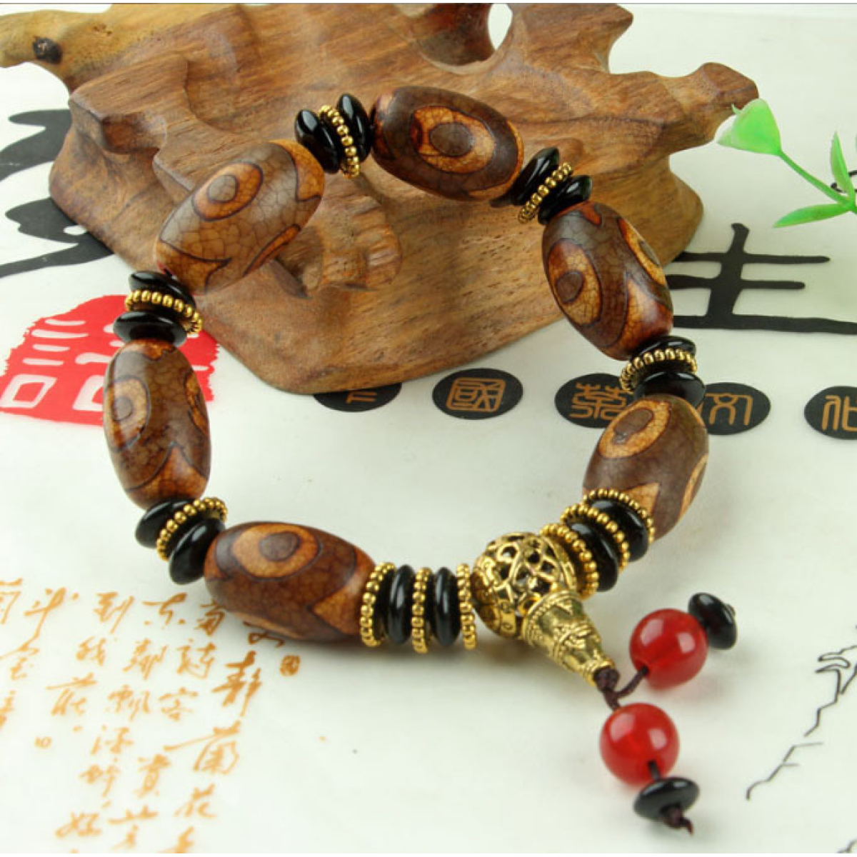 Браслет шість коричневих триоких ДЗІ з пензликом