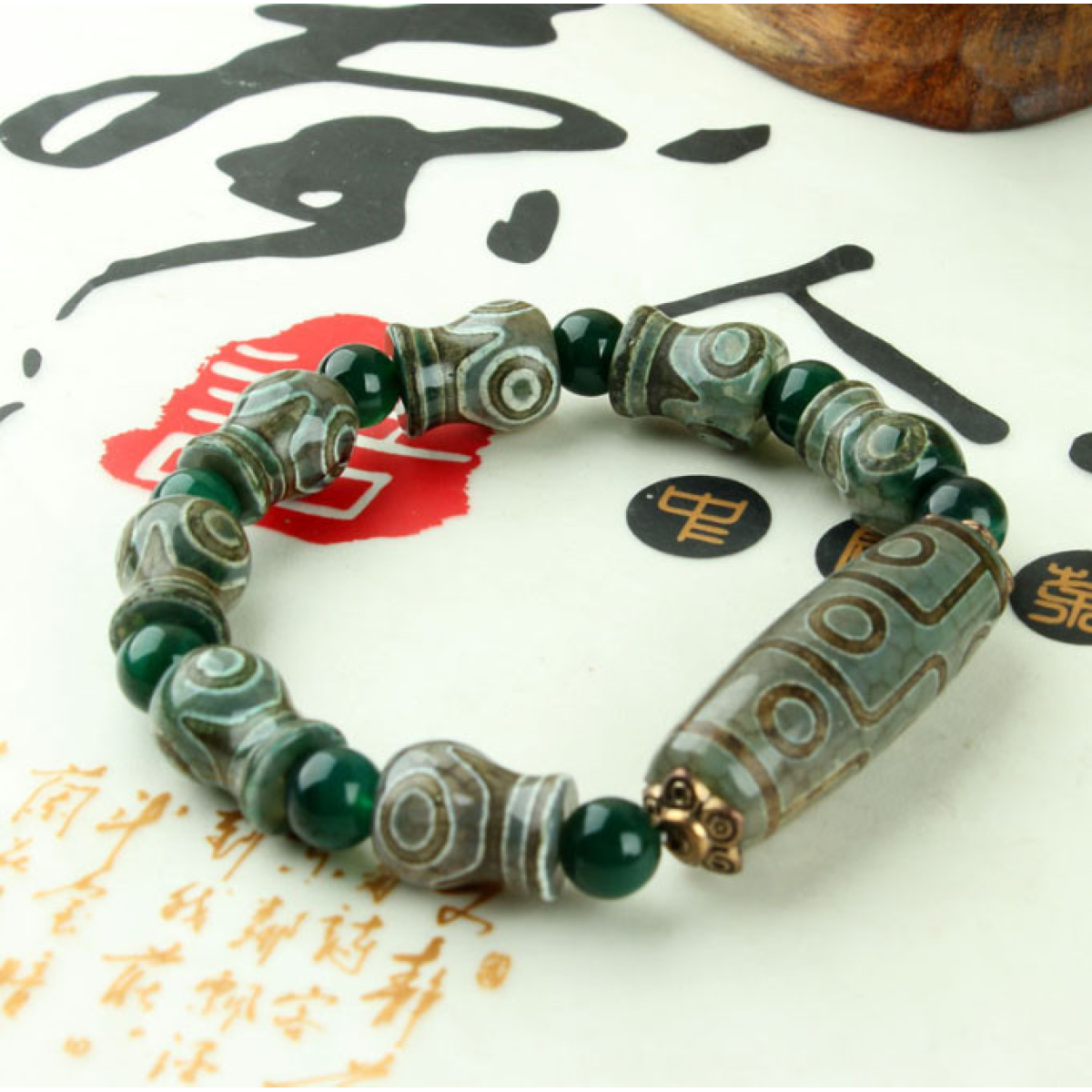 Браслет Зелена ДЗІ 9 очей і сім на 3 ока