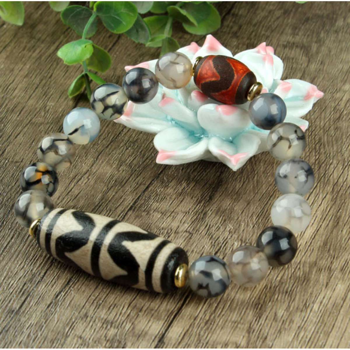 Браслет ДЗІ Зуб Тигра сірий агат