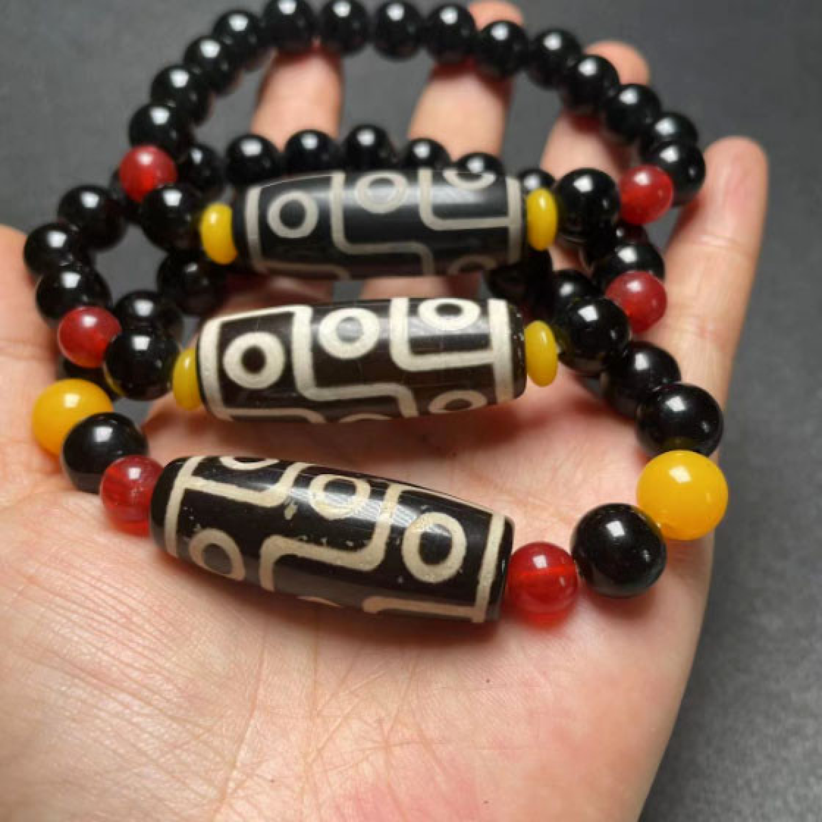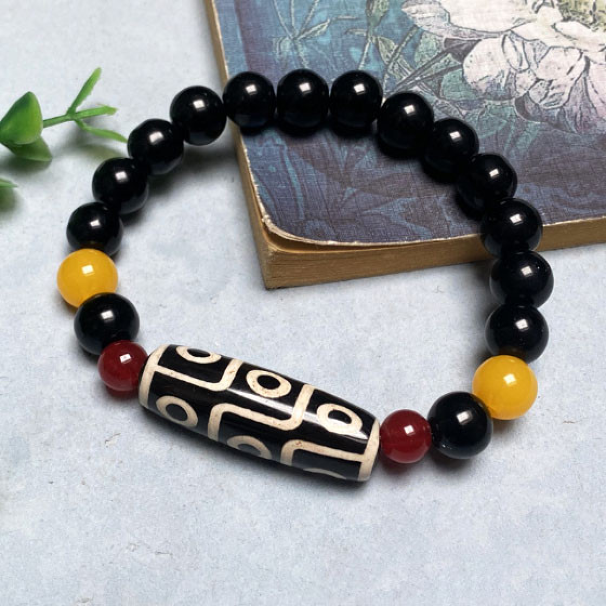 Браслет Чорно-біла ДЗІ 9 очей з чорним агатом