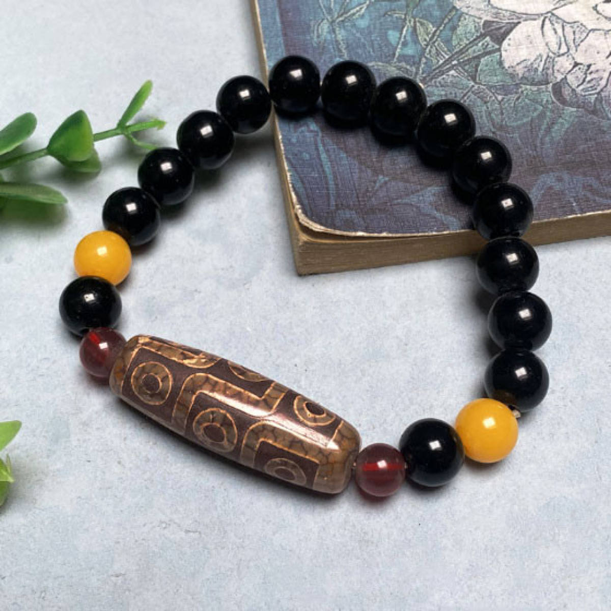 Браслет Червоно-коричнева ДЗІ 9 очей з чорним агатом