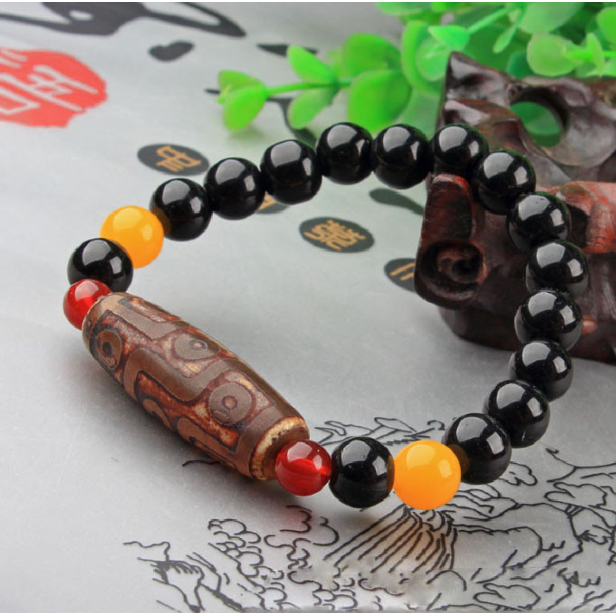 Браслет Антикварна ДЗІ 9 очей з чорним агатом
