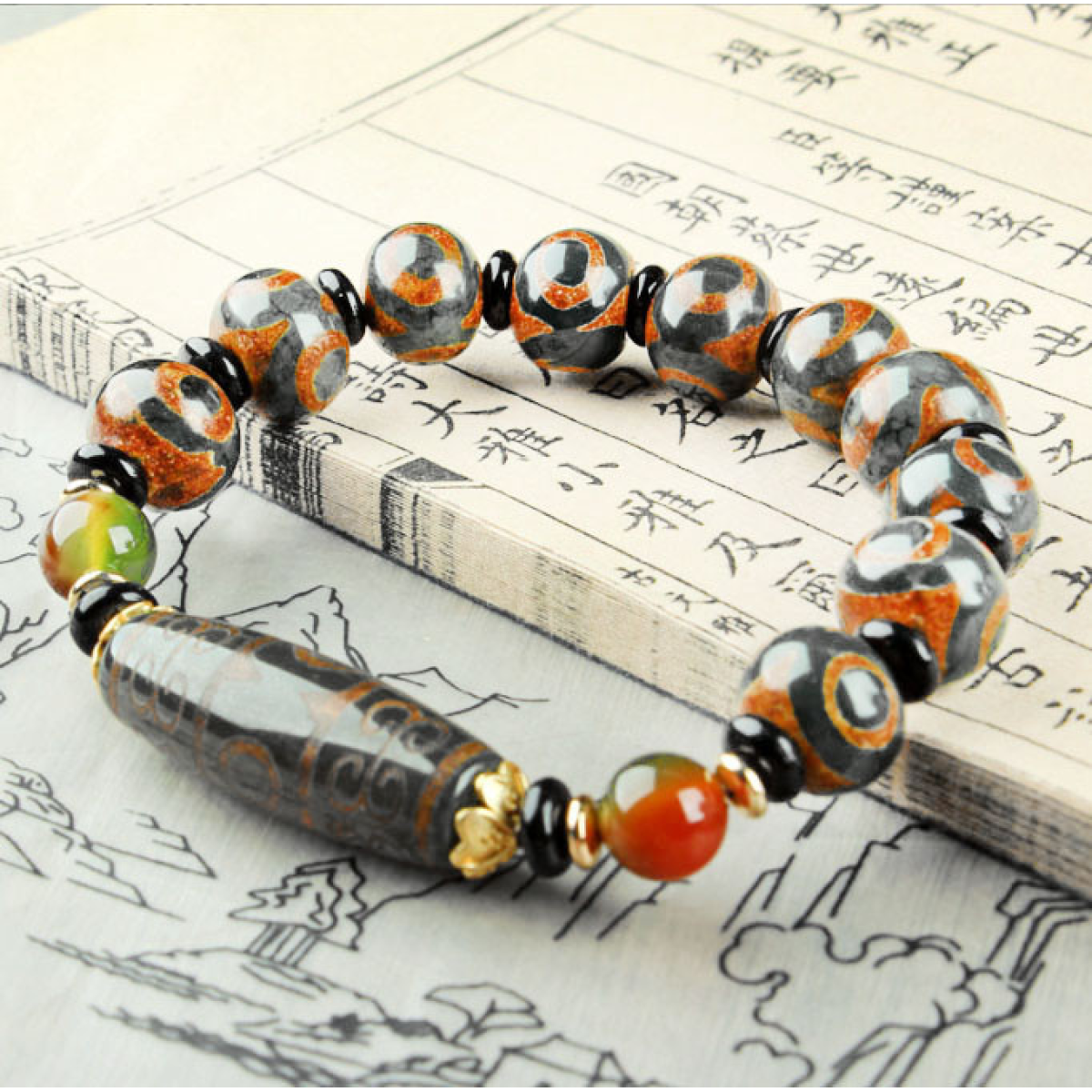 Браслет Зелено-коричневі ДЗІ 3 ока і десять на 3 ока