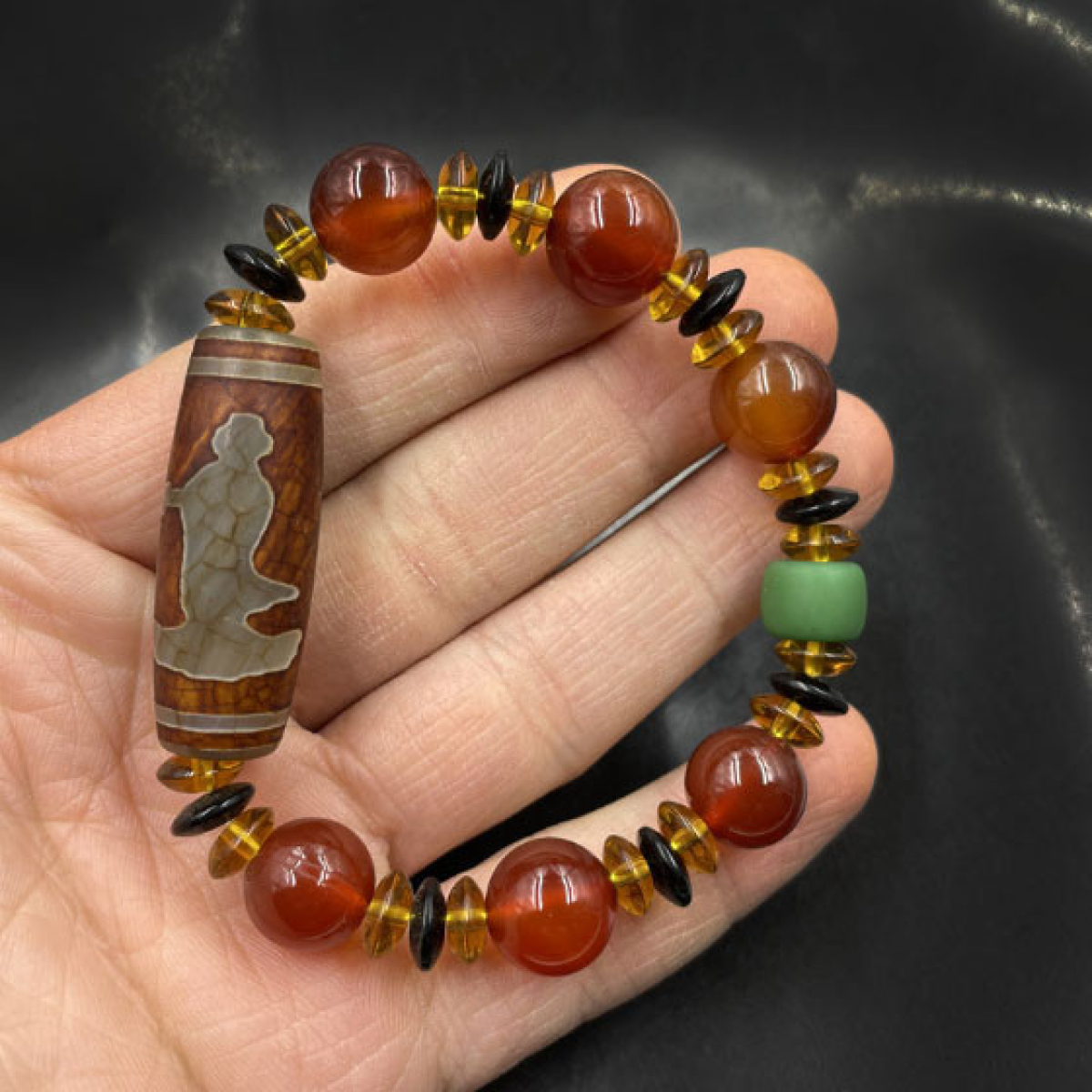 Браслет ДЗІ Гуань Інь з червоним агатом