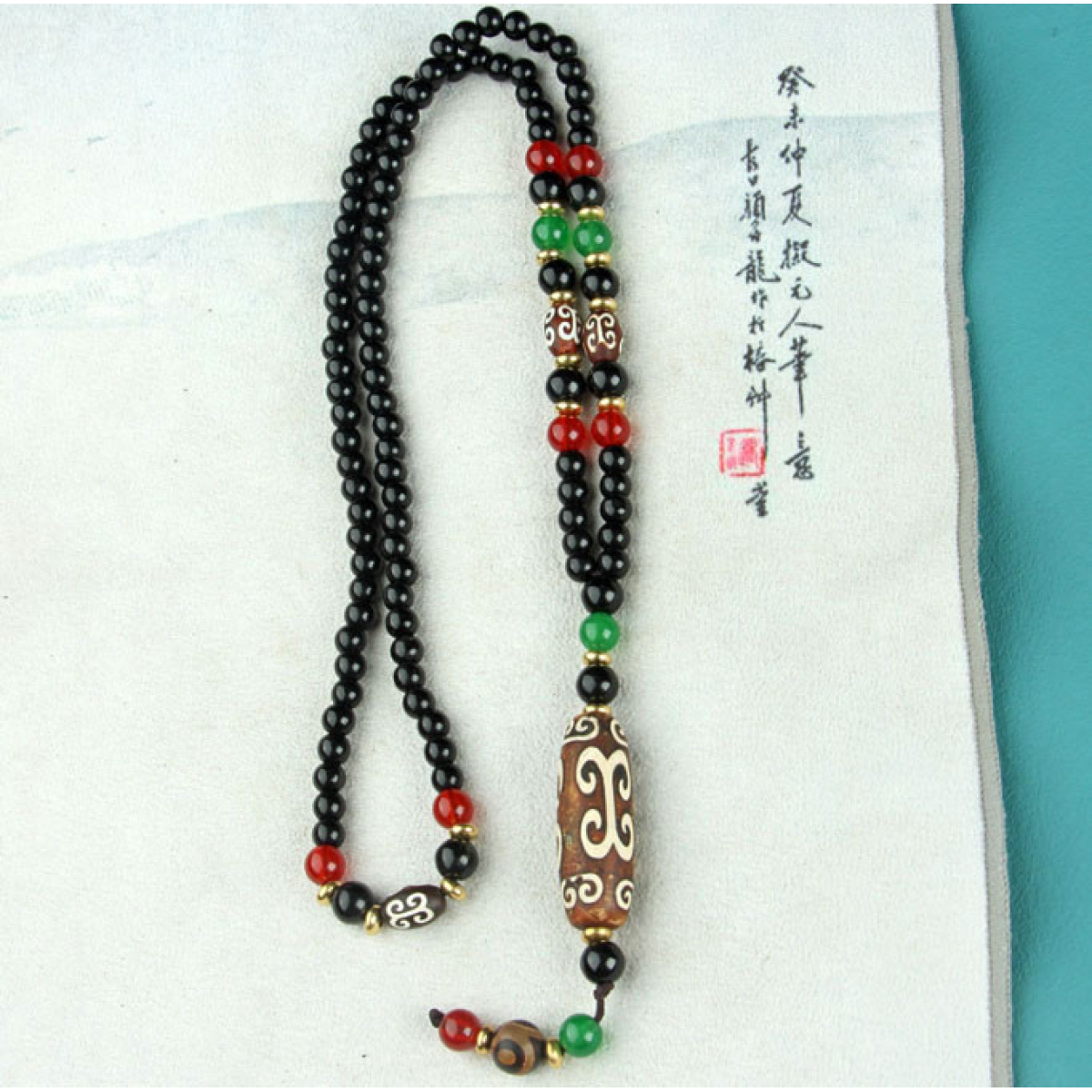 Кольє Біло-коричнева ДЗІ Хмари благоденства і три намистини