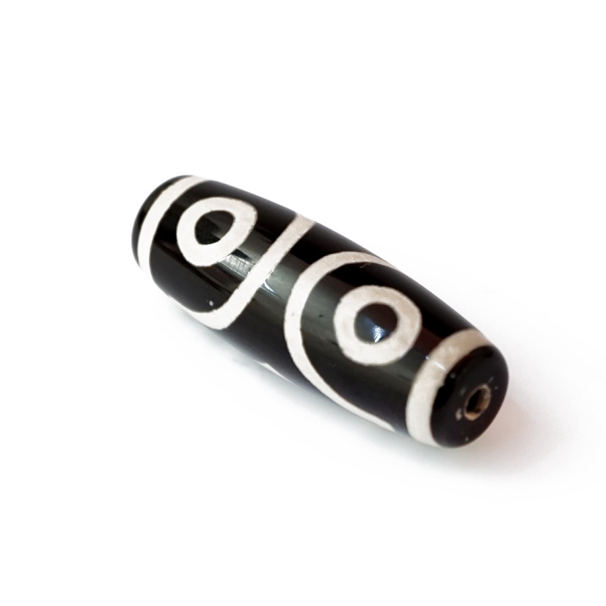 Бусина Дзі 3 ока приносить багатство її власнику. Три очі цієї намистини символізують бога багатства Куберу в Тибеті. Два очі відповідають очам цього божества, а третє – його роті. 3 очі Дзі також символізують об“єднання в одному цілому 3 ключові компоненти людини: тіло, розум і душу. Таке гармонійне поєднання душі, розуму та тіла сприяє досягненню доброго здоров“я, успіху та багатства. Триока намистина Дзі вважається виразом індуїстського бога Кубера. Кубера став богом багатства після того, як він вдавався до багаторічної суворої аскези. В нагороду за це верховний бог Брахма і зробив його зберігачем усіх земних багатств і дарував йому безсмертя. Бог багатства Кубера відомий також у буддійській традиції. Зображується зазвичай як невелика пухка людина, прикрашена дорогоцінним камінням, що тримає горщик з грошима і мангусту, що відригує дорогоцінне каміння. Основне завдання бога Кубера Землі — це захист земних багатств і рівномірне розподілу їх пропорційно кармічним заслугам людей. Тому вважається що носіння намистини 3 очі Дзі допомагає її власнику отримати належну частку багатства з горщика цього бога. Ця намистина призначена для накопичення благ, ідеально підходить для всіх, хто хоче накопичити якусь суму, надійно утримує від зайвих витрат, гроші перестають “витікати крізь пальці“. Також вона балансує життєву енергію ци шляхом гармонійного поєднання духовних сил, розуму та тілесної енергії. Завдяки цьому досягається гарне здоров“я. Тому намистина Дзі 3 очі не тільки намистини багатства, вона впливає на набагато більші аспекти нашого життя і приносить як удачу у грошових справах, так і повагу оточуючих, щастя та довголіття.