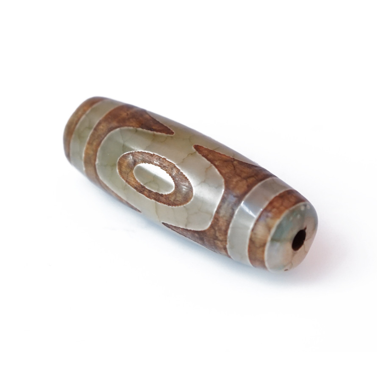 Бусина Дзі 3 ока приносить багатство її власнику. Три очі цієї намистини символізують бога багатства Куберу в Тибеті. Два очі відповідають очам цього божества, а третє – його роті. 3 очі Дзі також символізують об“єднання в одному цілому 3 ключові компоненти людини: тіло, розум і душу. Таке гармонійне поєднання душі, розуму та тіла сприяє досягненню доброго здоров“я, успіху та багатства. Триока намистина Дзі вважається виразом індуїстського бога Кубера. Кубера став богом багатства після того, як він вдавався до багаторічної суворої аскези. В нагороду за це верховний бог Брахма і зробив його зберігачем усіх земних багатств і дарував йому безсмертя. Бог багатства Кубера відомий також у буддійській традиції. Зображується зазвичай як невелика пухка людина, прикрашена дорогоцінним камінням, що тримає горщик з грошима і мангусту, що відригує дорогоцінне каміння. Основне завдання бога Кубера Землі — це захист земних багатств і рівномірне розподілу їх пропорційно кармічним заслугам людей. Тому вважається що носіння намистини 3 очі Дзі допомагає її власнику отримати належну частку багатства з горщика цього бога. Ця намистина призначена для накопичення благ, ідеально підходить для всіх, хто хоче накопичити якусь суму, надійно утримує від зайвих витрат, гроші перестають “витікати крізь пальці“. Також вона балансує життєву енергію ци шляхом гармонійного поєднання духовних сил, розуму та тілесної енергії. Завдяки цьому досягається гарне здоров“я. Тому намистина Дзі 3 очі не тільки намистини багатства, вона впливає на набагато більші аспекти нашого життя і приносить як удачу у грошових справах, так і повагу оточуючих, щастя та довголіття.