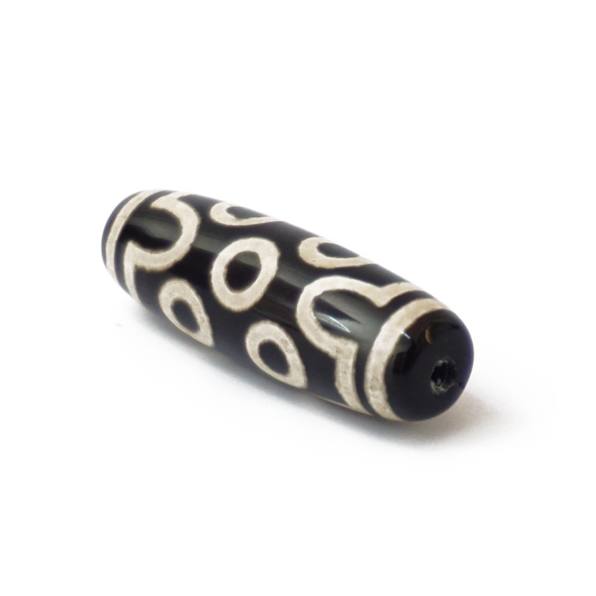 Бусина ДЗІ чорна 7 очей 4*1,4*1,4см. Бусина Дзи 7 очей сприяє семи різним устремлінням у житті. Це устремління у кар“єрному зростанні, досягненні багатства, благополуччя, довголіття, поліпшення взаємин, отримання визнання та самовдосконалення. Носіння цієї намистини дозволяє досягти успіху на роботі та в особистому житті, зміцнює здоров“я та гармонізує стан людини. Тибетська намистина Дзі 7 очей символізує сузір“я Великої Ведмедиці. 7 очей намистини Дзі представляють 7 зірок із цього сузір“я. У Тибеті вважають, що Велика Ведмедиця – це прояв семи будд медицини. Головним завданням цих семи будд є звільнити всіх живих істот від хвороб зовнішнього та внутрішнього характеру. Головний будда медицини, або гуру медицини зображується з тілом синього кольору, що символізує мудрість і те, що він є еманацією цілющої сили всіх будд. У лівій руці він тримає чашу, наповнену цілющим нектаром, а правій руці стискає лікарський рослина. Будда медицини допомагає людині пробудити тілесні та психічні сили, які ми можемо використовувати для зцілення себе і допомогти іншим людям. Це не якісь зовнішні сили, які допомагають нам, це те, що знаходиться всередині нас, у нашій свідомості. Це дрімучі сили, які можна пробудити медитацією, усвідомленням моменту «зараз», візуалізацією та іншими духовними практиками. При пробудженні це внутрішнє джерело надають величезну цілющу силу. Він відкриває резерви людського тіла і духу і здатний найповніше розкрити справжній особистісний потенціал людини. Тибетська намистина Дзи 7 очей допомагає у розкритті цього внутрішнього потенціалу. Через свої дивовижні якості бусина Дзи 7 очей є однією з найпопулярніших тибетських намистин. І кожна людина, яка прагне самовдосконалення, повинна мати її у своїй колекції. Звичайно, само собою, без роботи над собою нічого не відбувається. Але при носінні 7 очей намистини Дзі звершення даються легше, ніж без її допомоги. Носіння її приносить велику достаток і успіх у справах. Ця Дзі 7 очей хороша для початку нових справ. У цьому доходи зростають потреби її власника задовольняються найповніше. Вона робить шлях до досягнення мети більш гладким та спокійним.