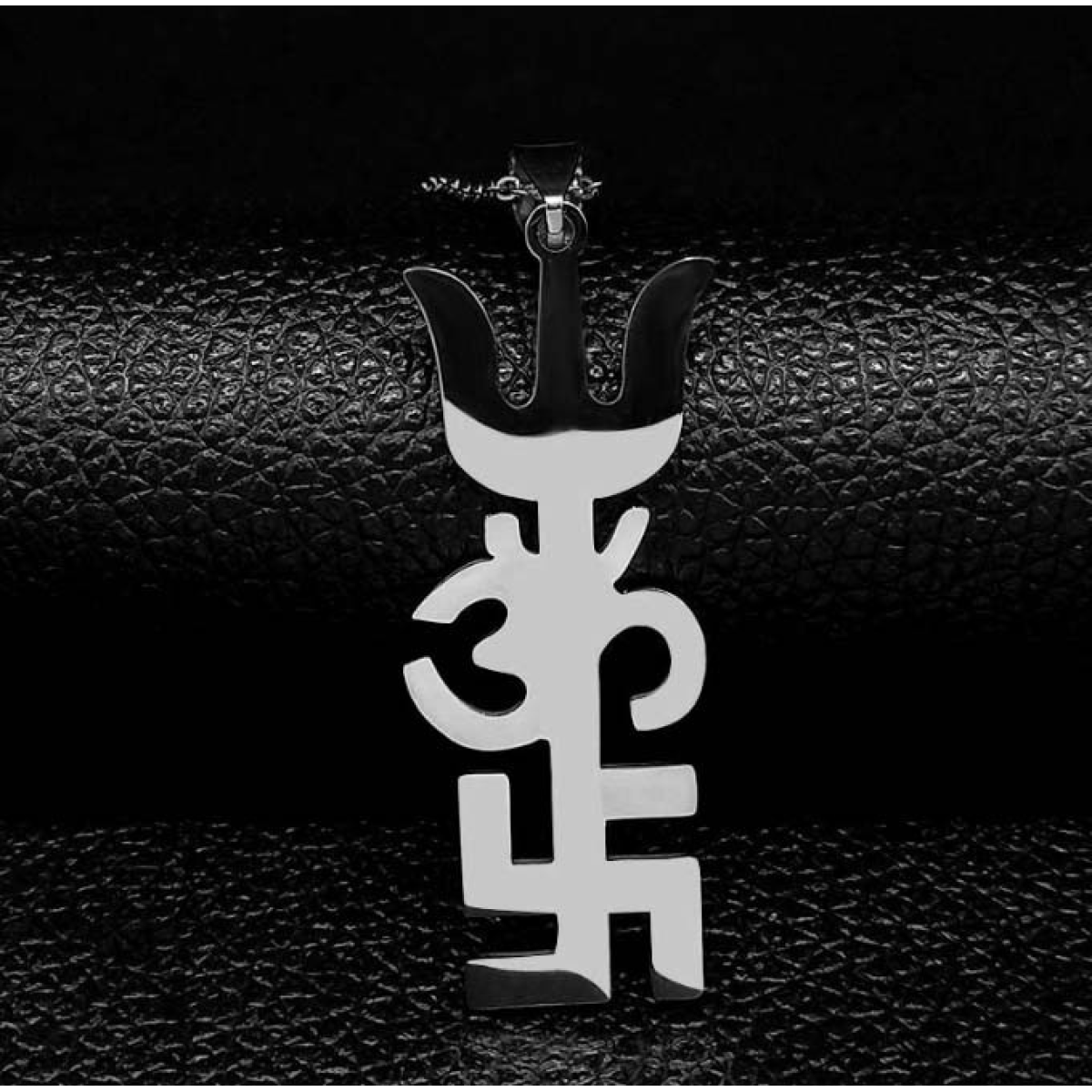 Ом Свастика Трішула білий метал з ланцюжком 60см.