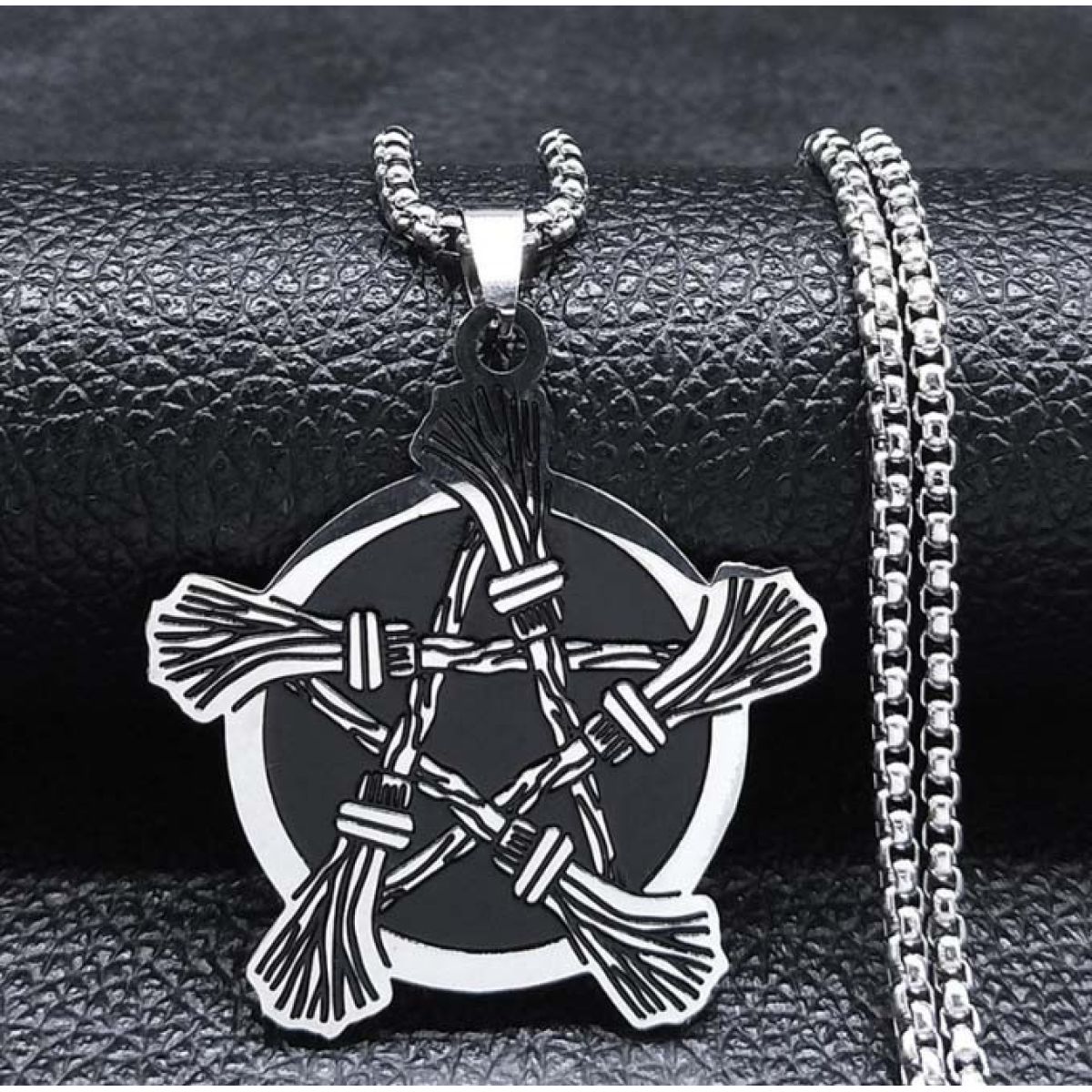 Пентакль з метелок білий метал з ланцюжком 60см.