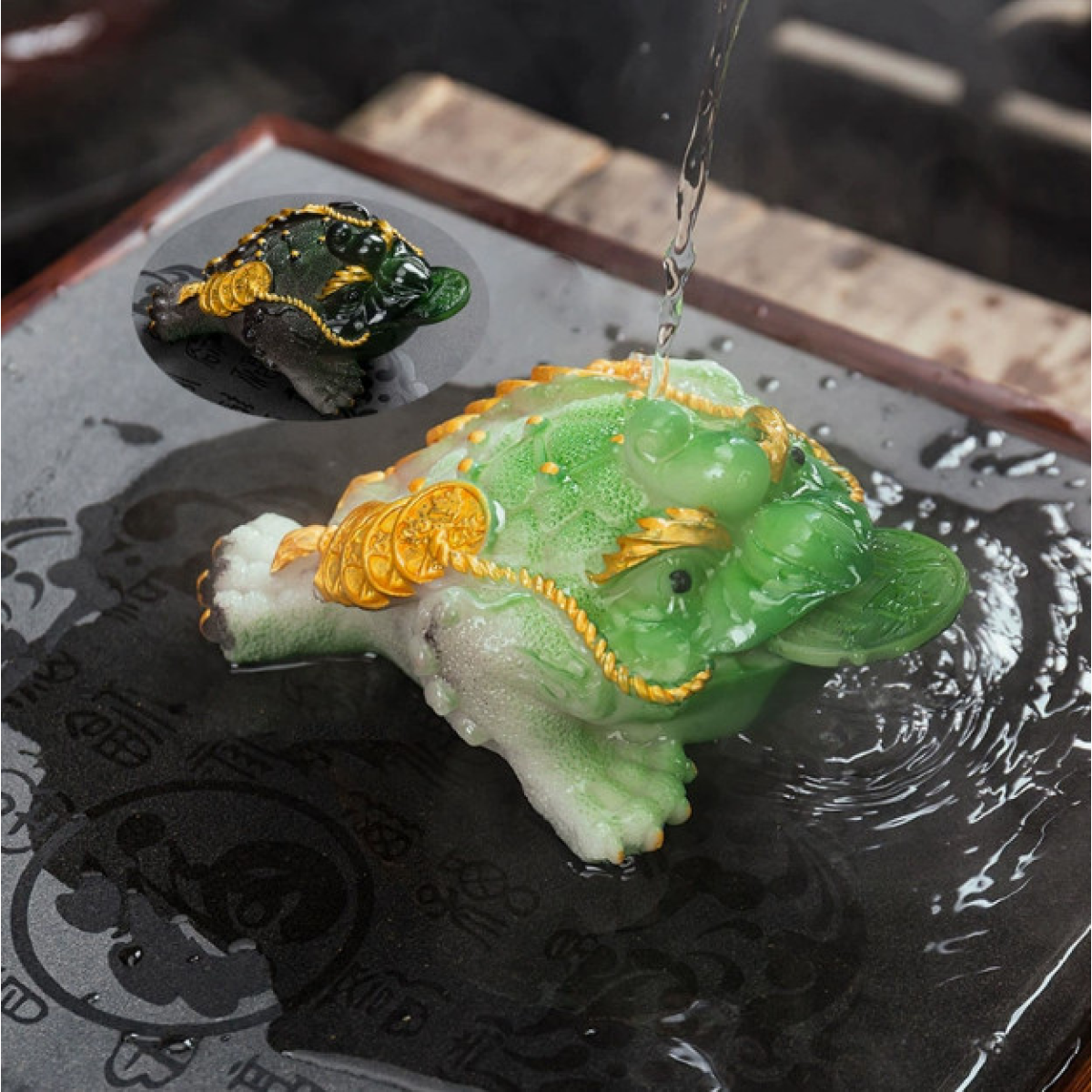 Чайна іграшка Жаба багатства Зелена середня