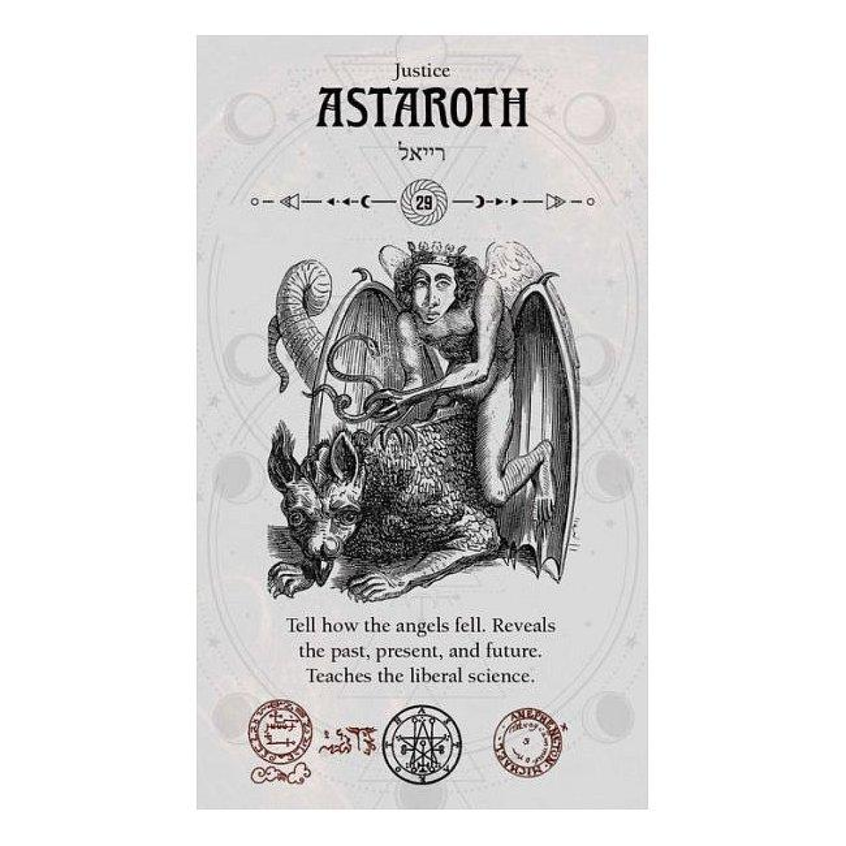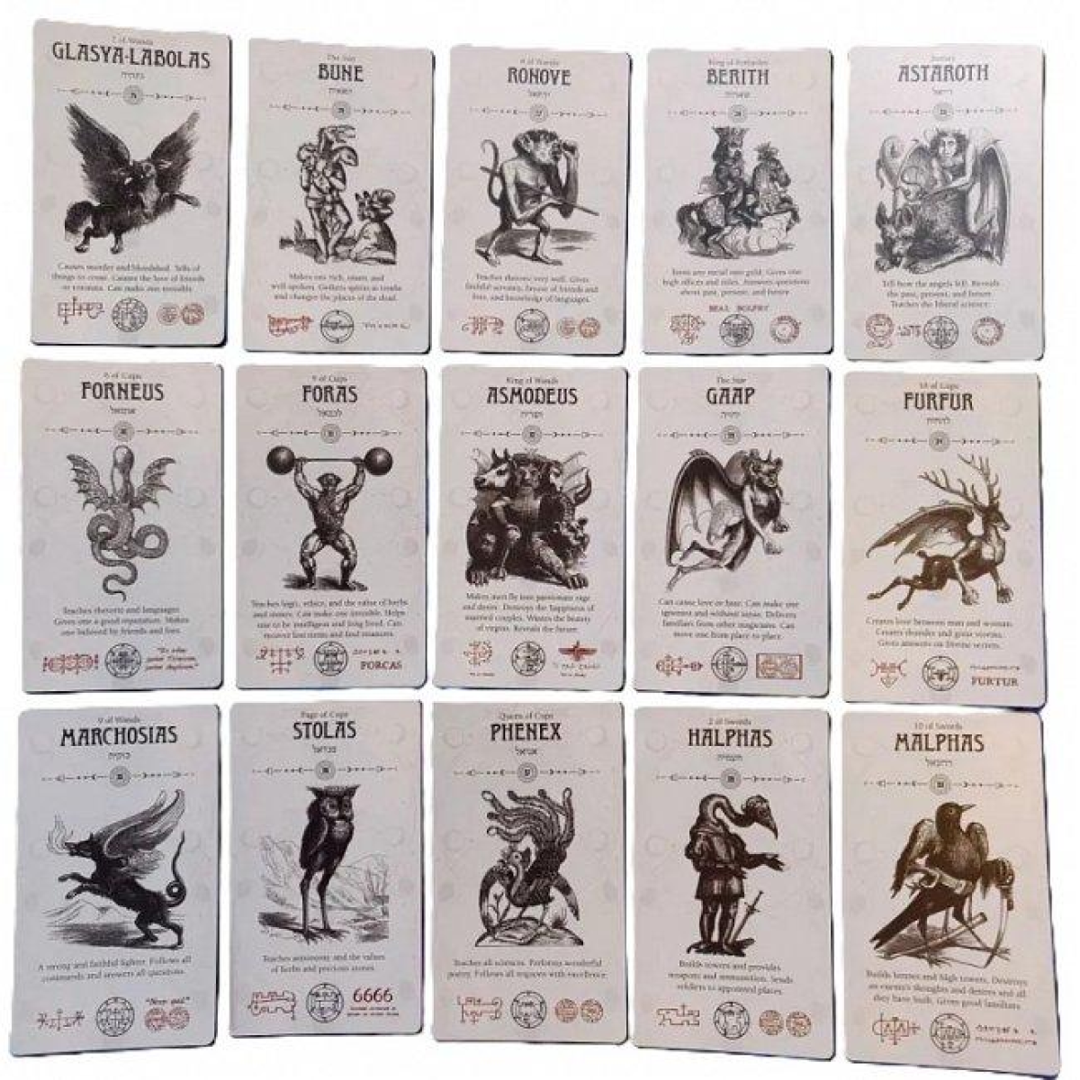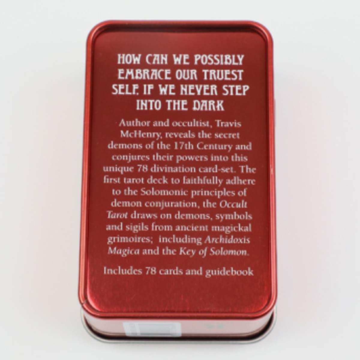 Вийдіть за рамки традиційних колод таро з цим бестселером - набором із 78 карт демонів, тепер у зручній бляшаній упаковці кишенькового формату. Ця колода-бестселер Таро тепер представлена у вигляді кишенькового видання у спеціальній жерстяній упаковці, що робить її чудовим та легким подарунком або чудовим варіантом для самостійного придбання. Автор і окультист Тревіс МакГенрі розкриває таємні демони XVII століття і втілює їхню силу в цій унікальній колоді для ворожіння на 78 картах. Спираючись на демонів, символи і сигіли з древніх магічних гримуарів, включаючи Archidoxis Magica і Ключ Соломона, Occult Tarot Pocket Edition є повністю реалізованим інструментом ворожіння, що дозволяє нарешті осягнути таємниці ночі. Перша колода Таро, в якій точно дотримано соломонівських принципів викликання демонів, Occult Tarot Pocket Edition дозволяє практикам відкрити для себе силу древніх демонів і навчитися приручати чудовиськ, що блукають між фізичним і духовним світами. Демони – це духи, які знаходяться на кордоні між фізичною землею та нижчими духовними сферами, – пише МакГенрі. “Окультне Таро використовує силу цих сутностей, щоб допомогти вам розкрити приховані таємниці вашого власного життя“. Окультне Таро розподіляє 72 демони з Ars Goetia за структурою колоди Таро, плюс ще 6 князів пекла (з 6 архангелами, доданими до Ангельського Таро) - Азазель, Бафомет, Вельзевул, Люцифер, Люцифуг Рофокале та Молох. Окультне Таро значною мірою засноване на Соломоновій магії. В анатомічній частині карти ви знайдете відповідність ключа Таро, розташоване у верхній частині, а потім ім“я демона, набране великим шрифтом. Нижче на івриті – ім“я правлячого ангела. Числове відповідність - це гоетичне число. Після ілюстрації з «Інфернального словника», яка у цій колоді чудово очищена та доопрацьована, вказані відповідні сили демона. Потім наведено три варіанти печаток виклику для цього демона. Найцікавіший підхід, про який йдеться в посібнику з використання цієї колоди, - ставити питання демону. Здійснивши ритуальне коло, про яке розповідається в посібнику, ви викликаєте демона і на кожне запитання витягуєте карту. Відповідність ключа Таро цій карті і буде відповіддю на ваше запитання. Ще один підхід, який використовує ця колода, - розклад «Кельтський хрест», але при цьому кожна карта, витягнута в позицію, показує демона, пов“язаного з цією картою, і розповідає про те, який вплив чинить демон на ваш життєвий шлях.