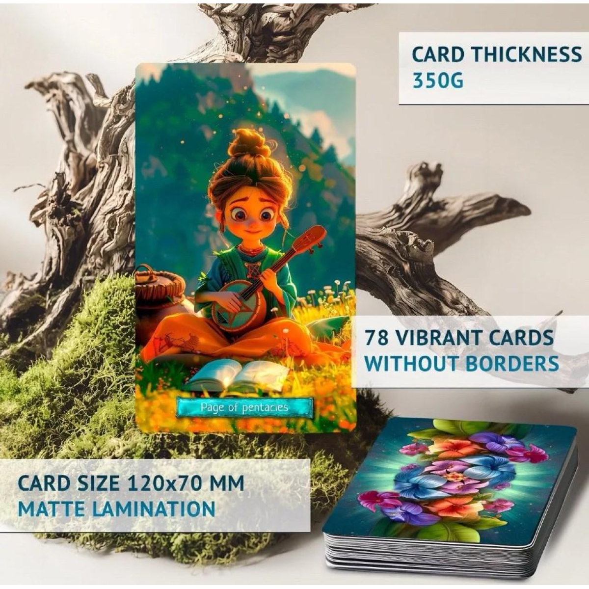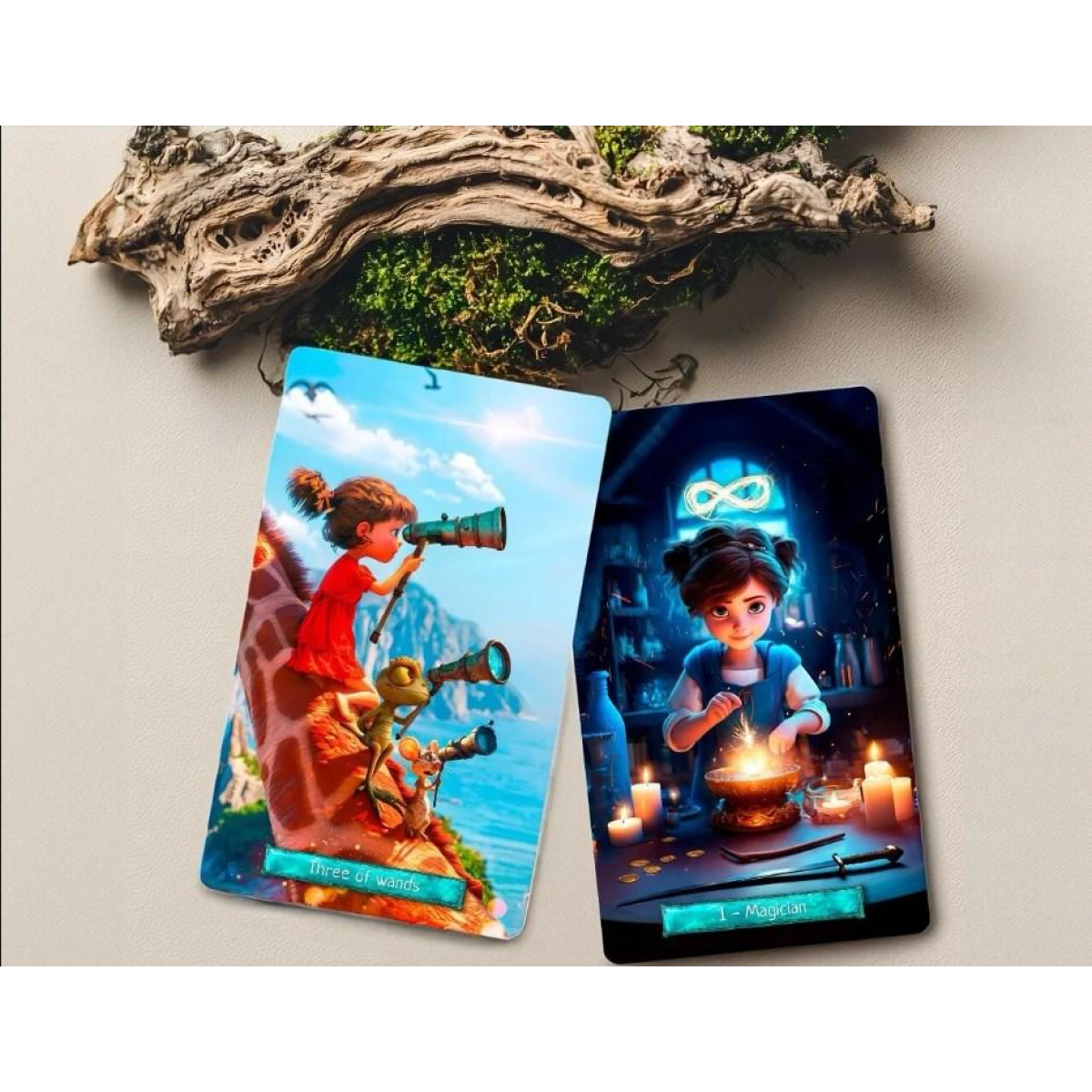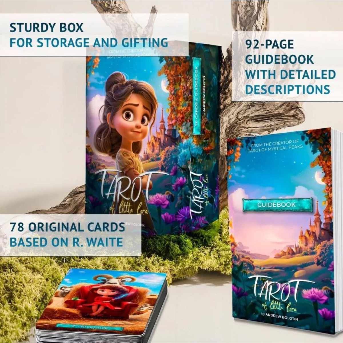 Tarot of Little Lera, Eng, колода Таро з 78 карт з путівником, читання таро, набір карт оракула для ворожіння, астрологічні подарунки, магічні карти Таро АНГЛІЙСЬКА ВЕРСІЯ Пориньте в чарівний світ з колодою Таро «Маленька Лера». Відчуйте магію з колодою Таро «Маленька Лера» — унікальною колекцією, яка перенесе вас у химерний всесвіт, де кожна з 78 карт розкриває окрему сцену з улюбленої казки. Познайомтеся з маленькою Лєрою, нашою героїнею, яка подорожує різними чарівними царствами, зустрічаючи дивовижних друзів і вирушаючи в чарівні пригоди. Кожна картка оживляє унікальну історію, спрямовуючи вас досліджувати нові грані вашого внутрішнього світу. Особливості колоди Таро «Маленька Лера»: - Чарівні місця: кожна картка представляє унікальне чарівне місце, наповнене дивом і уявою. - Головний герой: маленька дівчинка Лера веде вас крізь свої пригоди, допомагаючи дізнатися більше про себе. - Зачаровані друзі: на кожній картці Лера або одна, або оточена чарівними друзями, які допомагають їй у подорожі. - Окремі сцени: кожна картка - це окрема сцена, яка занурює вас у казку, багату глибоким змістом і прихованими символами. - Візуальна насолода: яскраві, насичені кольори та магічні елементи роблять кожну картку справжнім витвором мистецтва. Створена з любов’ю та увагою до деталей, ця колода пропонує унікальний досвід і незабутні моменти. Нехай Таро «Маленька Лера» стане вашим провідником у світ фантазії, натхнення та глибокого самопізнання. Досліджуйте кожну картку, знайдіть відповіді на актуальні запитання та створіть власну казку за допомогою цієї чарівної колоди Таро! Пориньте в чарівний світ Таро «Маленька Лера» і дозвольте кожній карті розкрити свою унікальну та незвичайну історію. Створіть власну казку з цією містичною колодою Таро!
