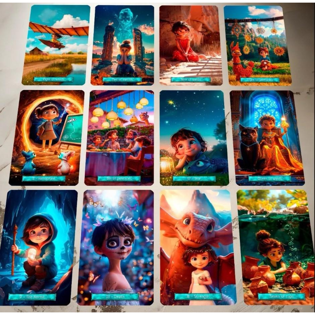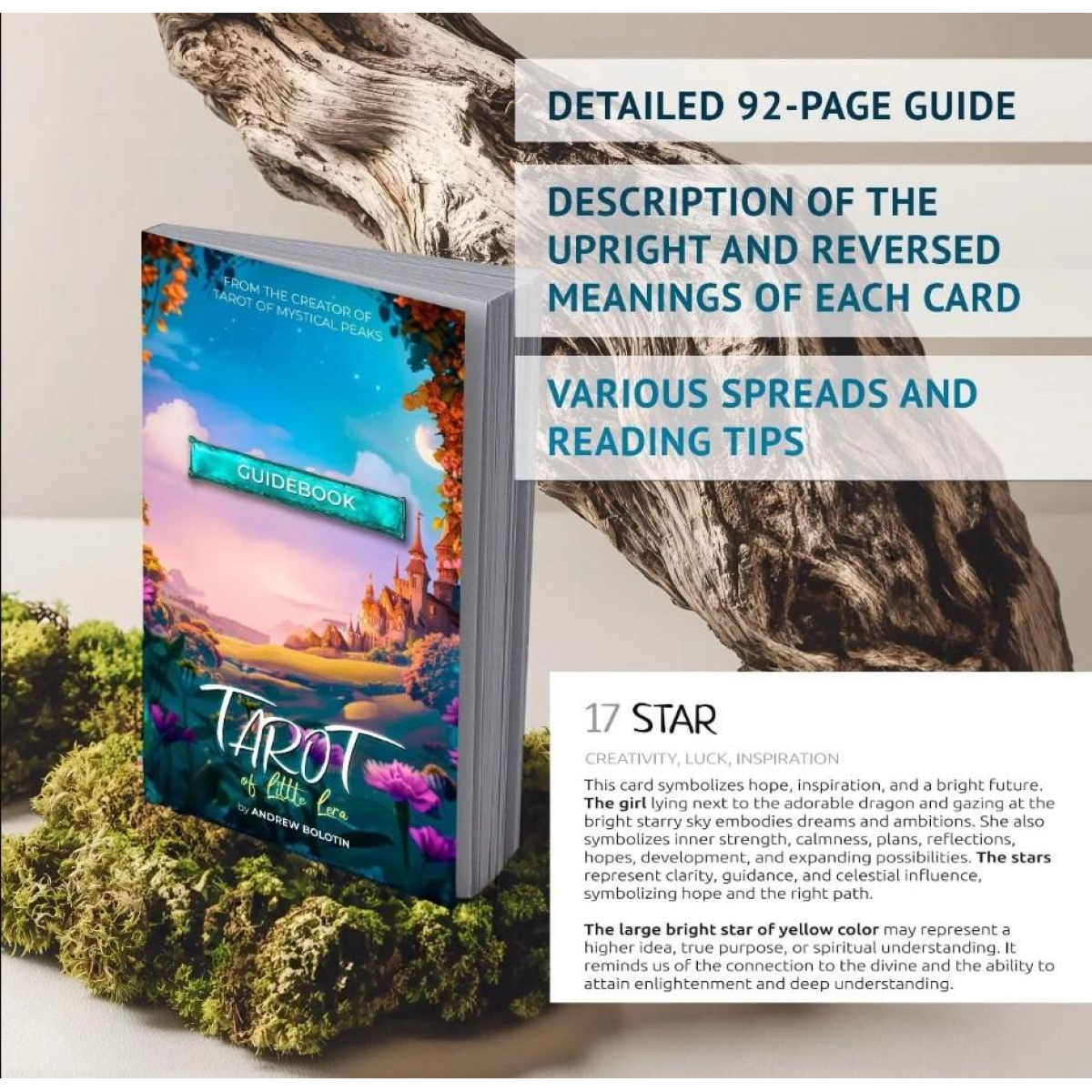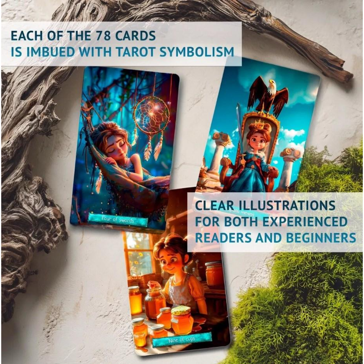 Tarot of Little Lera, Eng, колода Таро з 78 карт з путівником, читання таро, набір карт оракула для ворожіння, астрологічні подарунки, магічні карти Таро АНГЛІЙСЬКА ВЕРСІЯ Пориньте в чарівний світ з колодою Таро «Маленька Лера». Відчуйте магію з колодою Таро «Маленька Лера» — унікальною колекцією, яка перенесе вас у химерний всесвіт, де кожна з 78 карт розкриває окрему сцену з улюбленої казки. Познайомтеся з маленькою Лєрою, нашою героїнею, яка подорожує різними чарівними царствами, зустрічаючи дивовижних друзів і вирушаючи в чарівні пригоди. Кожна картка оживляє унікальну історію, спрямовуючи вас досліджувати нові грані вашого внутрішнього світу. Особливості колоди Таро «Маленька Лера»: - Чарівні місця: кожна картка представляє унікальне чарівне місце, наповнене дивом і уявою. - Головний герой: маленька дівчинка Лера веде вас крізь свої пригоди, допомагаючи дізнатися більше про себе. - Зачаровані друзі: на кожній картці Лера або одна, або оточена чарівними друзями, які допомагають їй у подорожі. - Окремі сцени: кожна картка - це окрема сцена, яка занурює вас у казку, багату глибоким змістом і прихованими символами. - Візуальна насолода: яскраві, насичені кольори та магічні елементи роблять кожну картку справжнім витвором мистецтва. Створена з любов’ю та увагою до деталей, ця колода пропонує унікальний досвід і незабутні моменти. Нехай Таро «Маленька Лера» стане вашим провідником у світ фантазії, натхнення та глибокого самопізнання. Досліджуйте кожну картку, знайдіть відповіді на актуальні запитання та створіть власну казку за допомогою цієї чарівної колоди Таро! Пориньте в чарівний світ Таро «Маленька Лера» і дозвольте кожній карті розкрити свою унікальну та незвичайну історію. Створіть власну казку з цією містичною колодою Таро!