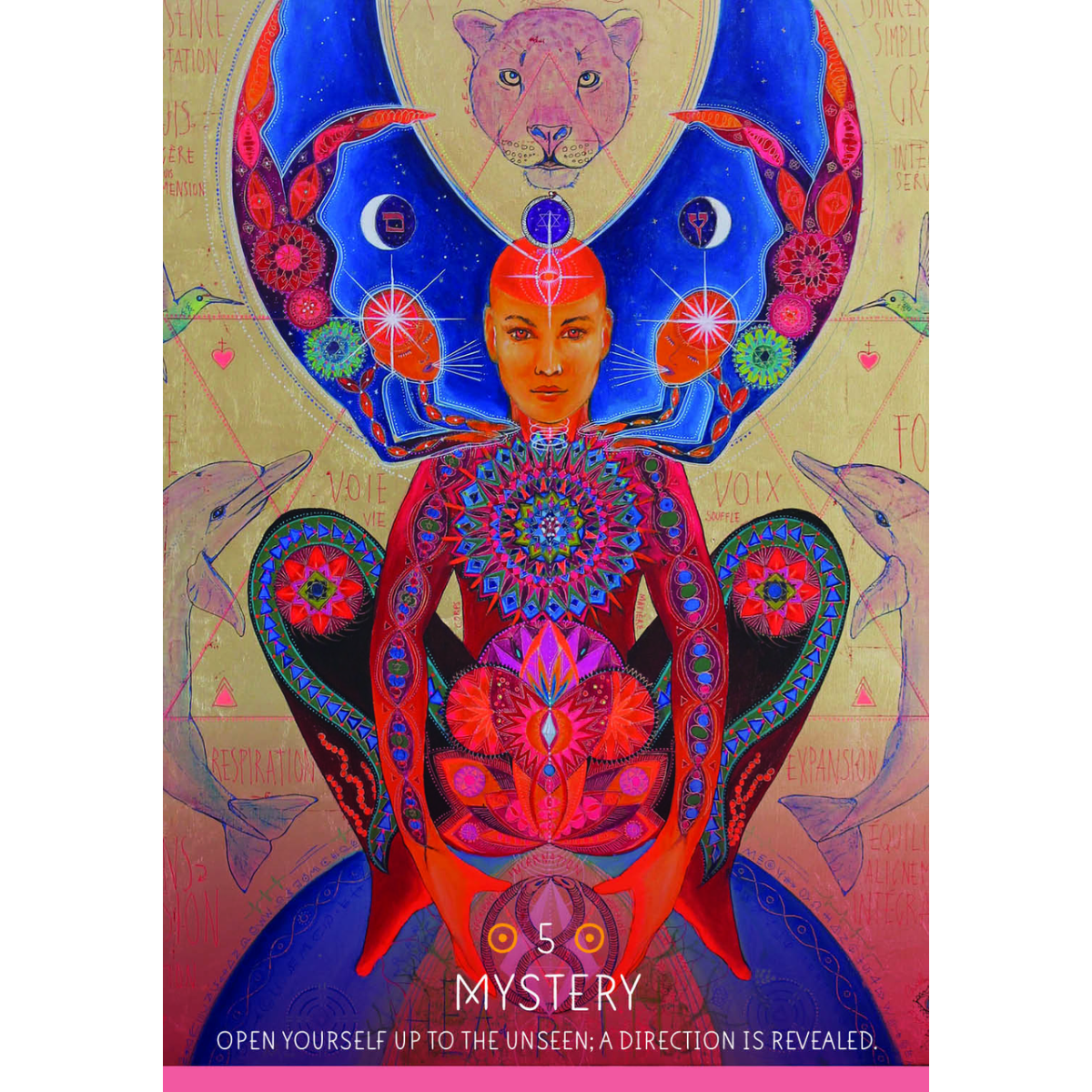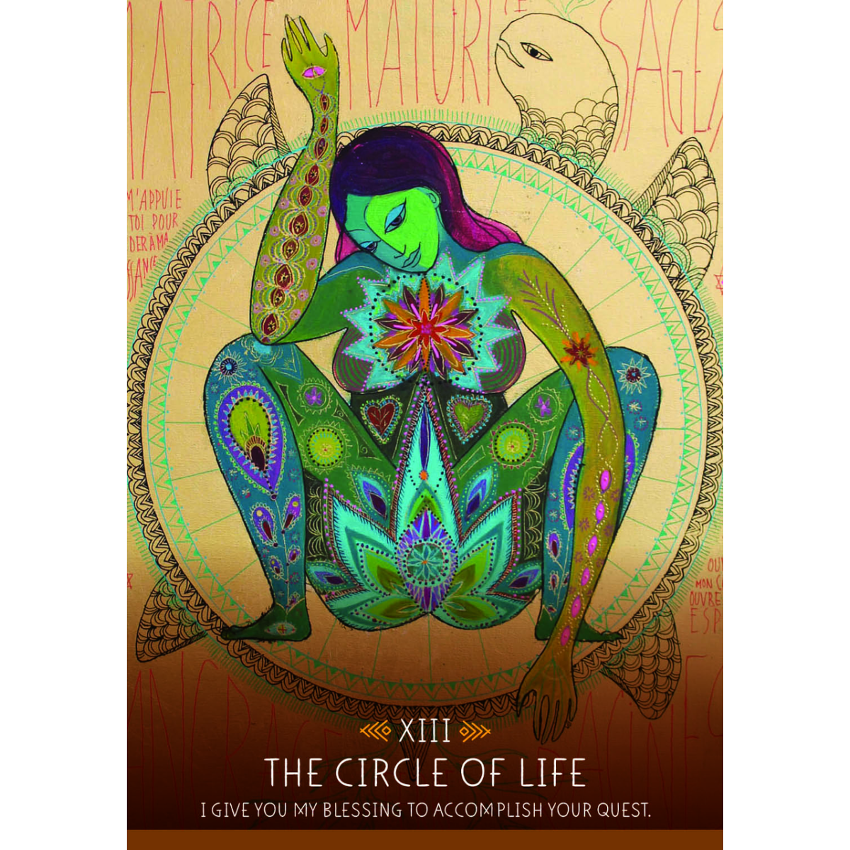 Оракул, заснований на шаманських навчаннях, традиціях перших народів і ритуальних мистецтвах, створений спільно Катрін Майяр і художницею Каролін Маньє, пропонує вам Шлях жіночої медицини: відкрийте для себе архетипи божественного жіночого початку, символи їх неприборканої сили, ваші дари, ваші союзники вас до мудрості Матері Землі. Вступивши на цей шлях ініціації, ви зможете дослідити свою сутність, розкрити свої таланти, випромінювати свою силу та втілити велику Мрію Пачамами. Жіночі кола, червоні намети, Міжнародна рада тринадцяти бабусь корінних народів, магія менструальних циклів, повернення до священної сексуальності... У ці часи великих змін жінки збираються у бажанні сестринства, маючи намір возз“єднатися зі своєю справжньою сутністю, пробудити свою життєву силу... і змінити світ. Жінки рухаються по дорозі від зцілення ран до пробудження священного жіночого початку... Все більше жінок приєднуються до посвячених їм колів з таких питань, як материнство, мудрість предків і сексуальність. усвідомлення. У нашу епоху глибоких змін колекція «Пробудження жіночності» покликана показати авторів-жінок, які є лідерами цього руху: фасилітатори жіночих кіл, засновниці «червоних наметів», вчителі мудрості предків, психотерапевти менструального циклу, арт-терапевти та майстри ритуалів, художників, преда шаманської, духовної та практичної - ця збірка просуває міжнародне бачення та відкриває унікальні та інноваційні можливості для світу, в якому жінки можуть жити відповідно до своєї глибинної природи.