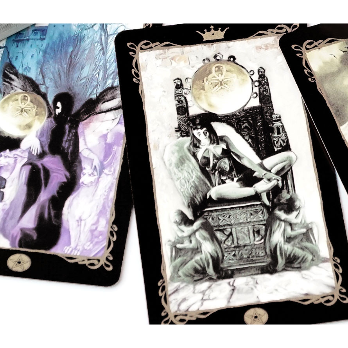 Розмір карти 10 * 5,8см. Таро Темних Ангелів відкриває двері у чудовий та дивовижний світ. Як боги і богині, сили природи, духи болю та гордості, вони подібні до деяких із нас. Через карти ми можемо з“єднатися з ними і взяти участь у цьому відчайдушному танці, що символізує життя та смерть. Кожна карта Таро Темних Ангелів є порталом у світ, де чекає на закінчення часів. Кожна карта – це можливість залишити земний світ та подорожувати на крилах ангелів. Щоб користуватися цією колодою, вам потрібно стати частиною цього світу і слідувати туди, куди вас запрошують — у темряву, надію та страх, які живуть у нашій душі. Карти вражають своєю потужною енергією, але вони не наражають нас на інфернальну пітьму; вони сподіваються на виправлення та відродження. Як Темні Ангели вони висвітлюють і очищають темні куточки нашої душі своїми чорними крилами. Їх сильний і гордий дух проявляється у стихіях та силах природи, у божествах та душах рослин. Вони є в наших снах, у поцілунках закоханих, в останньому подиху вмираючого. Вони супроводжують нас у житті, залишаючись у тіні свого загадкового світу. Темні Ангели знають таємниці наших сердець, вони мають секрети закритих скринь, і вони знають, яким шляхом знайти скарби. Вони знайомі з усіма нашими страхами та сердечними таємницями, незважаючи на наші спроби приховати їх від себе та інших. Голосом Таро Темних Ангелів можна розкрити ці таємниці та багато іншого, тільки потрібно запитати. І якщо ви довіритеся їм, вони готові захистити вас під своїми могутніми крилами і зцілити ваші страждаючі душі. Тому що вони знають: вони також відчувають провину за наші страждання і благають прощення. Кожна карта Таро Темних Ангелів є брамою у світ, що знаходиться в кінці часів, коли все закінчено і майбутнє відомо.