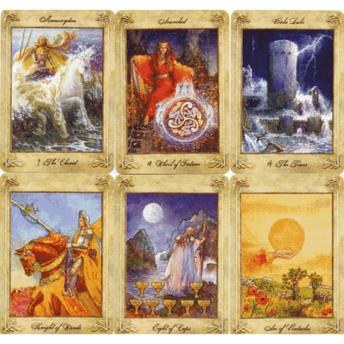 Таро Llewellyn – це приголомшливе досягнення, яке вже отримало визнання за свою глибину та красу. Акварельні зображення запрошують вас у містичний світ стародавніх лісів, чуттєвих морських пейзажів та чудових водоспадів, наповнених таємницею, змістом та магією. Ця багато ілюстрована колода заснована на традиційній колоді Райдера-Уейта-Сміта, що полегшує читання. У ній також розкривається захоплююча кельтська історія за участю Ріаннона в ролі імператриці, Брана Благословенного в ролі імператора, Дикого Пастуха в ролі диявола, Гвідіона в ролі мага, Ллеу Ллау Гіффеса в ролі Несучого Світло та інших фігур з валлійської міфології. Ця колода, створена відомою художницею Анною-Марі Фергюсон, розкриває валлійські міфи і присвячена Ллевелліну Джорджу, який переїхав з Уельсу до США в 1901 році, щоб викладати астрологію та заснувати видавництво Llewellyn Publications. До колоди додається повнорозмірна книга, в якій пояснюються міфи, пов“язані із зображенням кожної картки, а також їхні ворожильні значення. У комплект також входять два оригінальні розклади. Llewellyn Tarot пожвавлює стародавні міфи, зберігаючи при цьому структуру, яка робить її ідеальною для ворожіння. У ній зібрані мудрість і дух двох великих особистостей, одна з яких уславилася в міфах, а інша відкрила астрологію на новій землі. Надихаюча та практична, ця колода використовуватиметься вами щодня і з особливих випадків. Чи буде це ваша перша чи сота колода, вона має бути у вас.