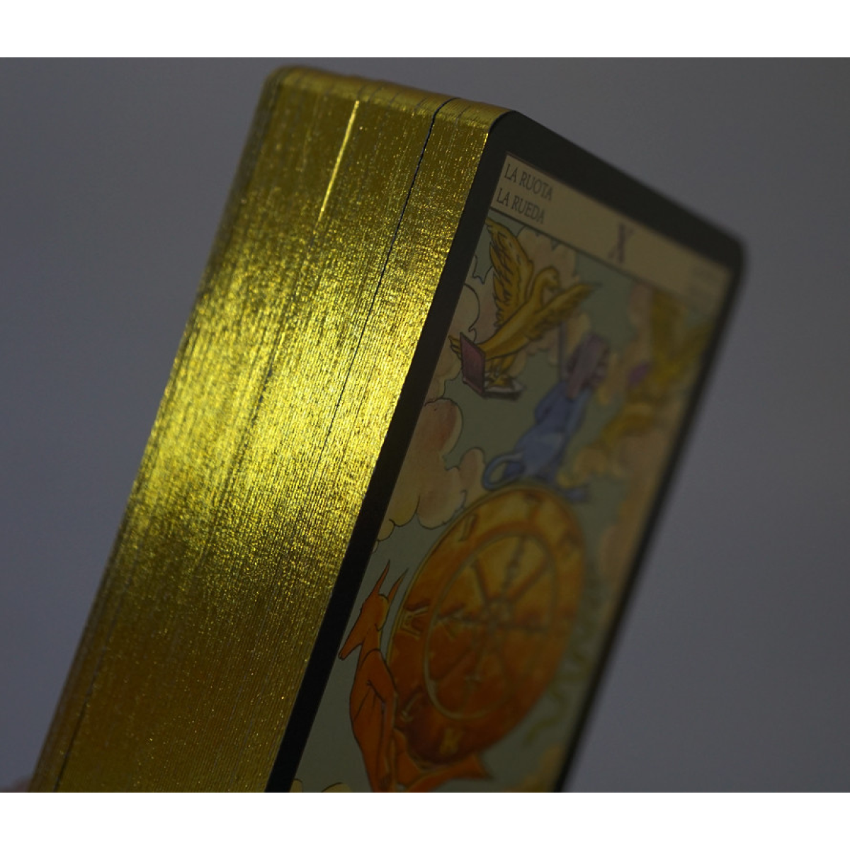 Розмір карти 9,7*5,7см. Таро Нового Бачення – це нестандартна інтерпретація класичних образів колоди Райдера-Уейта. Ви бачите всі карти традиційного Оракула буквально з «під іншим кутом зору», відкриваючи собі «тіньовий» бік кожної з гадальних карт. Ті карти, які ви звикли бачити зі спини, тепер відкривають вам своє обличчя, а ті, хто стояв у фас, показують приховані за їхніми спинами предмети, інших персонажів та пейзаж, що несе сильне смислове навантаження. Вам цікаво, на що завжди так уважно дивиться «Маг» у традиційному Таро? Що приховано за троном «Короля» та «Імператриці»? Який символ написаний на одязі Ангела та «Вісімки жезлів», якщо дивитися на них зі спини? Колода Нового Погляду дає вам відповіді на ці питання, обґрунтовані докладним вивченням традиційної символіки та значень карт. Колода дає вам більше інформації та деталей, значимих у трактуванні розкладів у системі Оракула RWS. На ілюстраціях показані додаткові елементи ландшафтів, предметів, специфічних атрибутів і, що найголовніше, – дійових осіб. Наприклад, навпроти Мага стоїть натовп людей, а за його шатами, біля ніг, ховається маленька ручна мавпочка. За троном Справедливості дві жінки тримають кошик із новонародженим немовлям, а Повішеного гудить і осміює натовп черні. Цікаво, що «дзеркальна» колода цих карт Таро намальована братами-близнюками: Джанкукою та Раулем Цестаро. Новий ракурс їхніх ілюстрацій показує нам те, що є на перший погляд таємницею, показуючи внутрішню сутність кожного Аркана. Такі класичні архетипи як «Сонце», «Смерть», «Вежа», «Світ» лише трохи змінюють своє початкове значення, тоді як багато інших карт постають у зовсім новому світлі. Наприклад, «Повішений», що зустрічається знущальним настроєм натовпу, інтерпретується в менш духовному руслі і доповнюється такими значеннями, як «каяття», «прилюдний суд», «точка зору», «трудність кінцевого рішення». «Колісниця» теж сильно змінюється через поворот у перспективі - за нею ми бачимо прикутих чоловіка і жінку, що приречено марять слідом. Ця колода найбільш корисна для тих практиків, які слідують класичній системі Уейта і хочуть розширити свої знання щодо трактування карток у цьому Оракулі, доповнюючи свої прогнози більш точними деталями. Ви досліджуєте «тіньовий» бік колоди, впізнаючи карти так само, як ви дізнаєтеся про людський характер і піднаготну сутність.