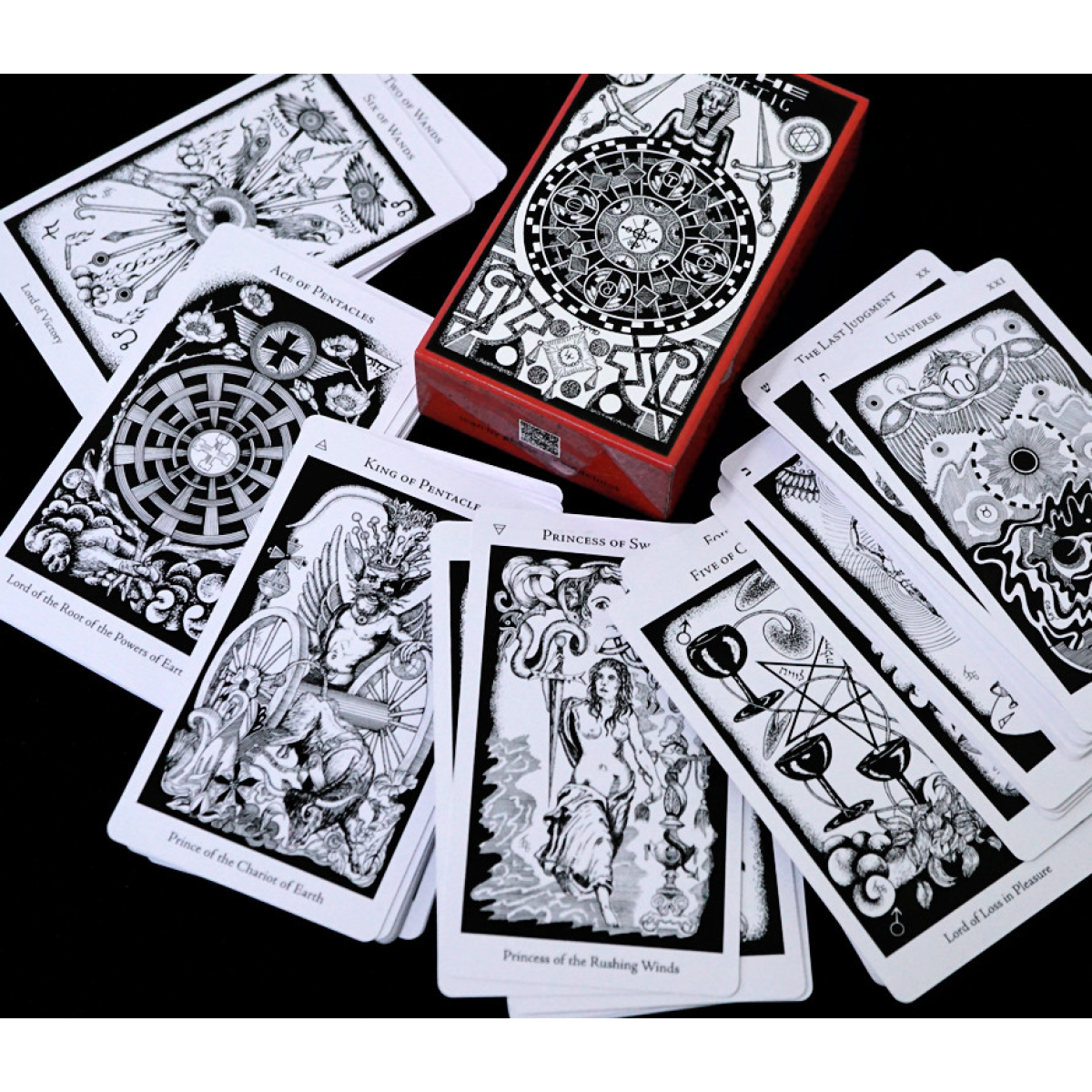 Розмір карти 10,2*6см. Таро герметичне задумано стати найважливішою колодою з усіх езотеричних колод карт Таро, створених у XX столітті. Заснована на глибоких езотеричних дослідженнях Таємного Ордену Золотої Зорі, в даний час є класичною. Її найбагатший символізм включає астрологічні відповідності, елементи ангельського письма, геомантичні постаті, символи нумерології та каббалістики. Чорно-біле художнє виконання колоди «Герметичне таро» зосереджує увагу на найскладніших деталях і блискуче розкриває магічну силу карт. Це чорно-біле Таро є чудовим зразком як для учнів, так і для досвідчених тарологів. Вона дозволяє читачеві повною мірою використати всі аспекти інтерпретації з першого погляду. Ця колода є однією з небагатьох, яка вказує на практиці впливу астрології на наше життя. Кожна карта пов“язана з відповідною планетою, аспектом та елементом. Символіка складна та потужна. Зображення у Герметичній таро полегшують вивчення Древа Життя та основи каббалістики. Графічно зображено концепцію сили, форми і рівноваги . Літери івриту асоціюються з старшими Арканами і чітко видно на кожній карті. Імена ангелів небесних дня та ночі розташовані на всіх Малих Арканах. Це одна з небагатьох колод, яка пропонує два чоловічі та два жіночі образи у Палацових картах, відповідно до збалансованого погляду на реальність у моделі Древа Життя.