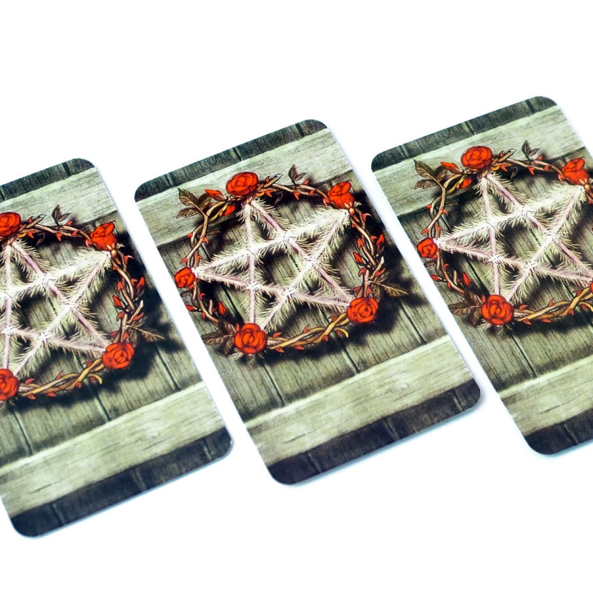 Розмір карти 10,2*6см. Таро Зеленої Відьми присвячено «зеленому відомству», великому напрямку сучасної магії, що поєднує кельтську магію, травництво, кухонні чари, взаємодія з фейрі (Ші) та інші види чаклунства. Така колода сподобається і послідовникам Віккі, і відьмам, які будують свою практику на взаємодії з природою, і тим, хто бажає глибше осягнути давні язичницькі символи. Барвисті ілюстрації карт наповнені позитивними образами, що несуть натхнення та ідеї для повсякденної магічної практики, а пророцтво за допомогою Таро Зеленої Відьми допоможе вам побачити своє життя у світлі язичницької та природної мудрості, здобути спокій та впевненість на своєму шляху. 78 карт “Таро Зеленої відьми“ - це традиційні Молодші та Старші Аркани. Масти Молодших Арканів є ритуальні вівтарні інструменти: пентакль, атам, жезл і кубок, що символізують енергію стихій (Землі, Повітря, Вогню та Води). Придворні карти Молодших Арканів вказують на тип особистості та характер, а номерні – на подію. На Старших Арканах зображені герої вікканських оповідей, що символізують вас чи вашу ситуацію. На кожній карті художник зобразив безліч деталей (одні видно відразу, інші доведеться пошукати): це можуть бути знаки зодіаку, трави, комахи, птахи, тварини, вказівки на пори року. У поєднанні символів та образів криються різні інтерпретації, задумані автором та художником. Спробуйте розгадати їх і ви будете здивовані, наскільки точно (і по-різному, залежно від ситуації) розкриваються перед вами карти, а значить, і ваше розуміння того, що відбувається. Зелена відьма з радістю поділиться своєю мудрістю, варто лише поставити їй запитання