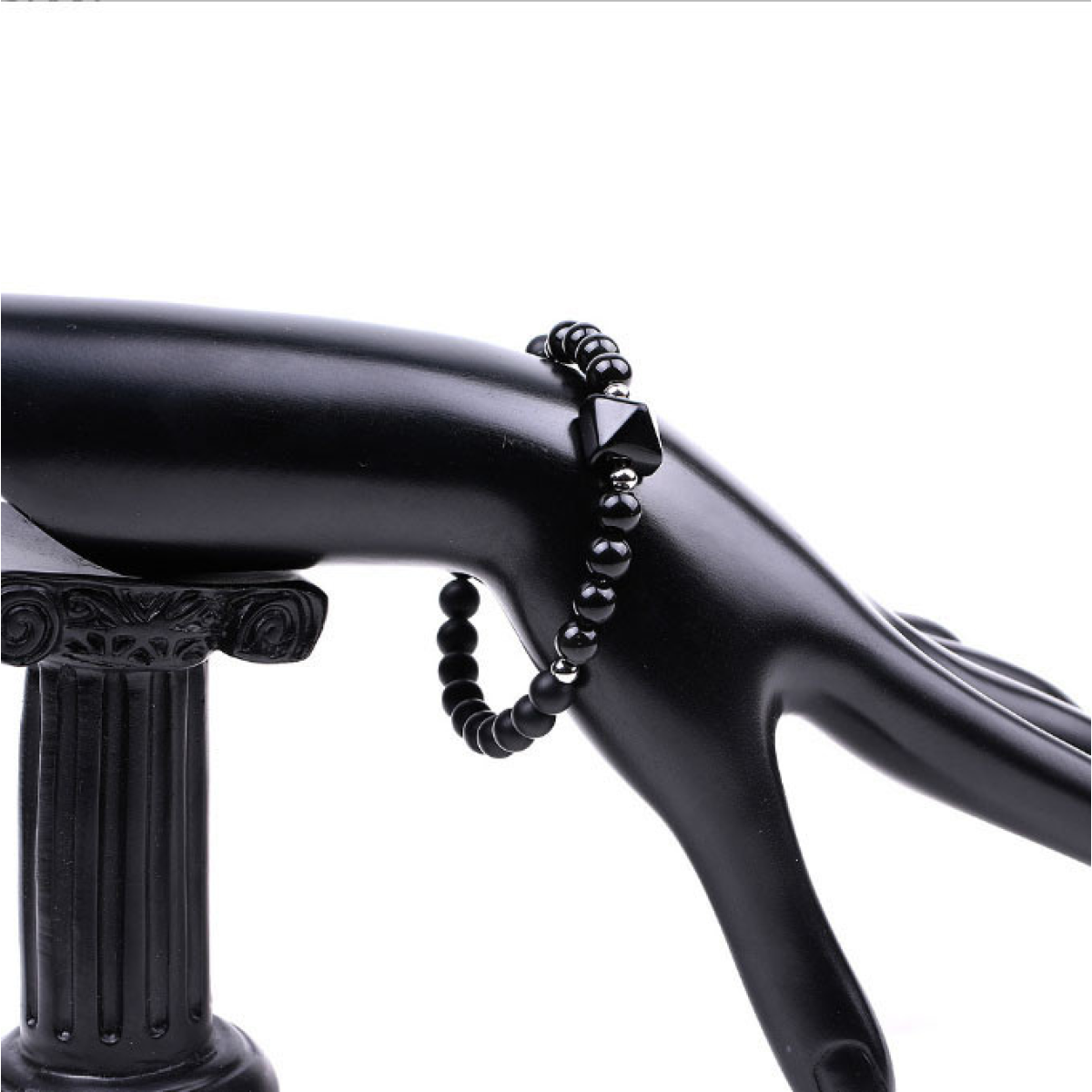 Браслет Пірамідка Лавовий камінь Чорний обсидіан