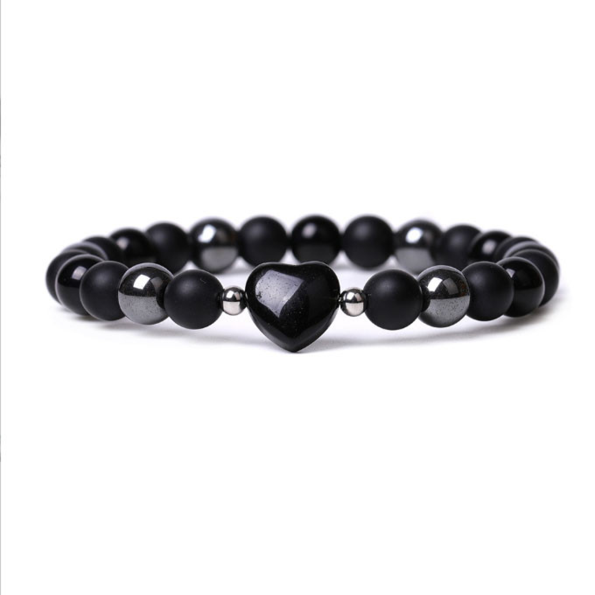 Браслет Серце Гематит Лавовий камінь Чорний обсидіан