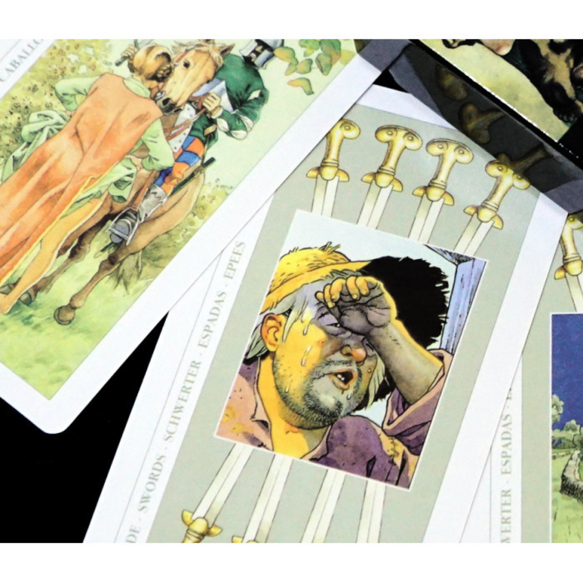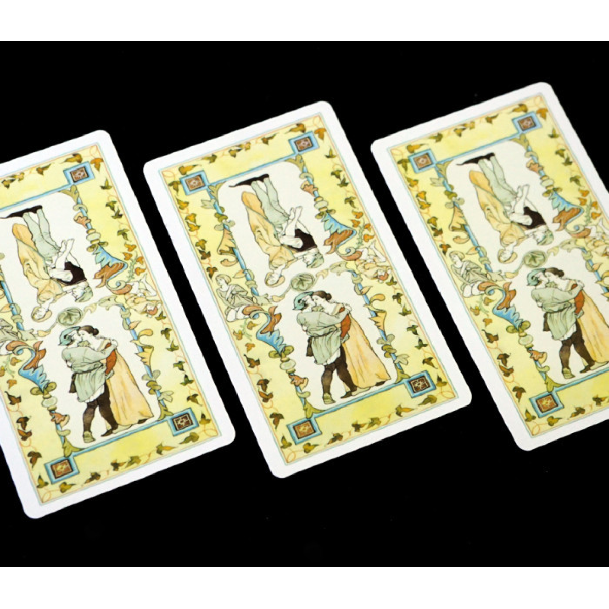 Розмір карти 10,2*6см. Карти Таро Декамерон, галерея яких знаходиться прямо перед вами, були розроблені Лучано Спадануда у співавторстві з Рікардо Мінеті, П“єтро Алліго та Валентиною Болатто. Художник, який працював над ілюстраціями, — Гіацинто Годензі. Перше видання відбулося у 2002 році, згодом колода перевидавалася ще двічі – у 2006 та 2012 роках. Основна ідея авторів — показати світ чуттєвих задоволень, любові, стосунків між чоловіком та жінкою через середньовічні картини, сповнені пристрасті, ніжності, ревнощів та сексу. Назва колоди обрана невипадково: якщо ви читали знаменитий твір «Декамерон» Джованні Бокаччо, то напевно дізнаєтесь у героях Арканів персонажів із цих захоплюючих новел. Особливості колоди Еротична спрямованість – це головна особливість колоди Таро Декамерон. Галерея, яку ви бачите на даній сторінці нашого сайту, у багатьох викликає стійке неприйняття, інші ж тарологи стверджують, що за нехитрими сюжетами насправді ховається цілісна смислова складова. Незважаючи на те, що на перший погляд здається, ніби Аркани Декамерона — це лише набір еротичних картинок, багато відомих тарологів цілком успішно використовують ці карти у своїй практичній роботі. Колода не відноситься до жодної з існуючих традицій, а теми, які вона розкриває — це особисті стосунки між закоханими, подружжям, парами, які тільки починають зустрічатися і будь-якими іншими спілками, в тому числі і нетрадиційною сексуальною орієнтацією. Декамерон показує нам світ чоловіків і дозволяє глибоко опрацювати психологічні проблеми, мотивацію, поведінку чоловіків. Якщо знамените Таро Манара – це жіночий світ, то Декамерон – царство чоловіків, відверте, без жодних сентиментів.