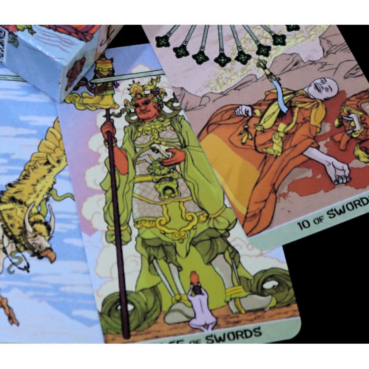 Розмір карти 10,2*6см. Це Таро, натхнене життям і вченням Гаутами Сіддхартхі — Будди, який постає не як історична особистість, а як один із тих, хто досяг просвітління, Бодхісаттв, і є прикладом для майбутніх потенційних Будд. Це подорож до вашого вищого “Я“. Тільки розуміння того, що відбувається в житті, і постійний самоаналіз можуть призвести до просвітління. Розширте свої горизонти віщування та пізнання з Siddhartha Tarot, колодою, що з“єднує буддійську мудрість з можливостями карт Таро. Ці чудові карти сповнені дивовижних образів, занурених у м“яку атмосферу вищої реальності, що утихомирює. Зображуючи безтурботних бодхісатв, добрих чи войовничих духів, художник спирався на класичну іконографію, використовуючи багато прийомів буддійських майстрів. Але в Таро Сіддхартхі є і індивідуальність, і чудова кольорова гама, яка майже набуває самостійного життя на цих малюнках. Бузковий, рожевий, бірюзовий, шафраново-рудий та інші чудові відтінки передають почуття любові, співчуття та абсолютної краси, з якими буддисти репрезентують своїх незримих вчителів. Сіддхартха Таро може здатися надто екзотичним західному практику, але ця колода зовсім не така складна і специфічна. Її структура та найменування арканів відповідають класиці, кожен аркан має підпис російською мовою і впізнаваний, якщо ви знайомі з класичним Таро. Ви зможете почати працювати з колодою, не будучи обізнаним у буддійському символізмі, поступово нарощуючи свої знання, впізнаючи зображених на картах божеств і переймаючись збереженою ними філософією.