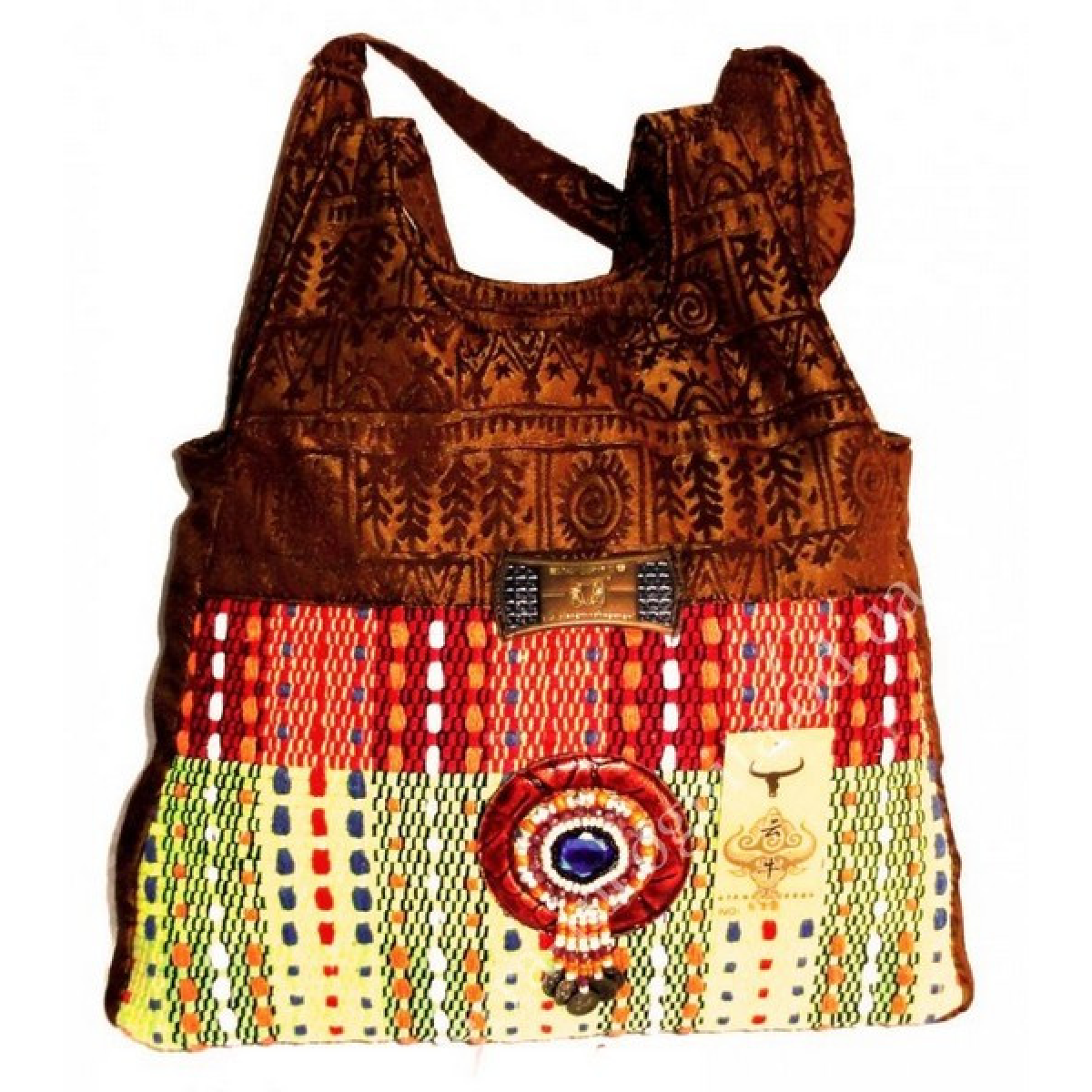 Сумка жіноча шкіра + текстиль + намистини №7