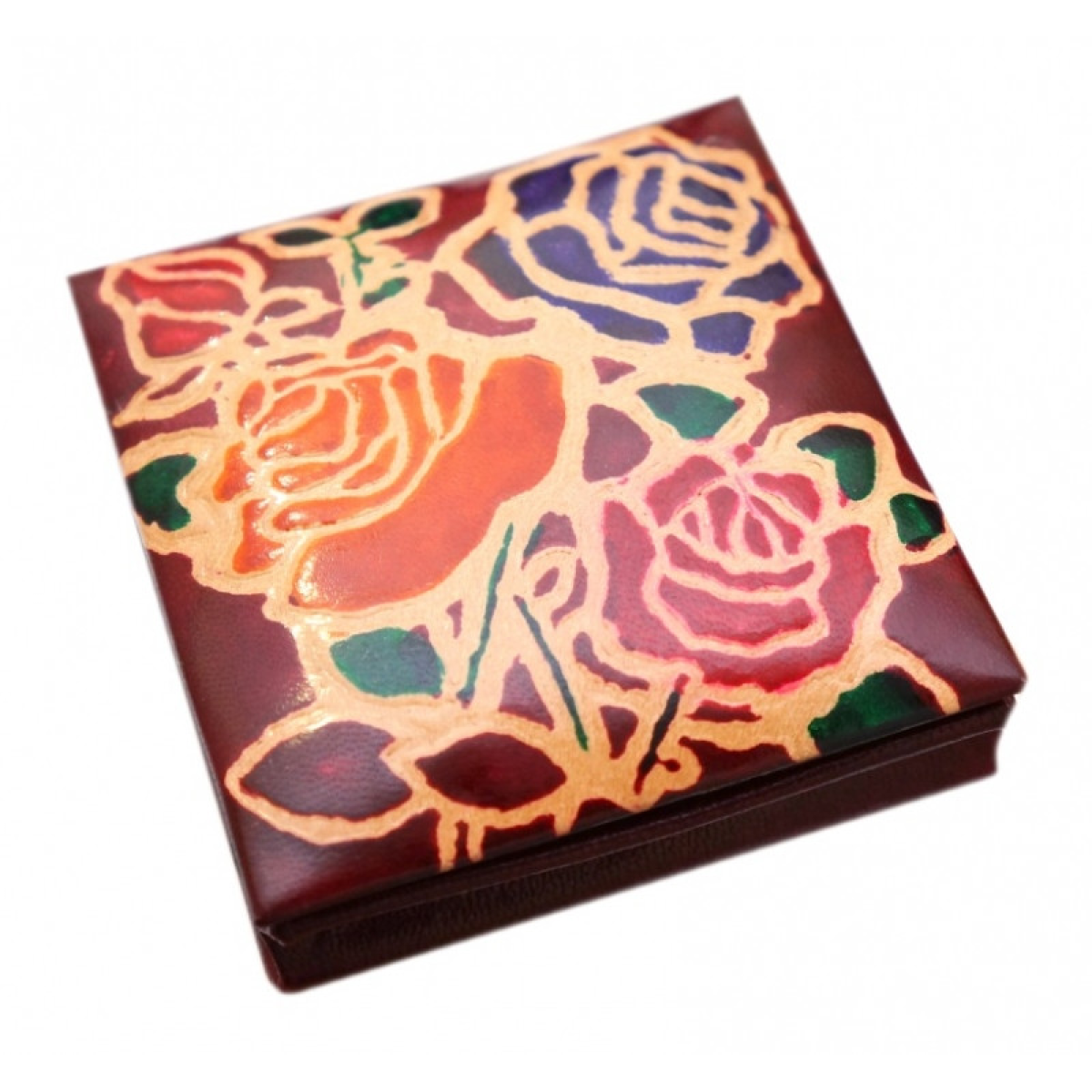 Гаманець шкіряний на кнопці Троянди Бордовий