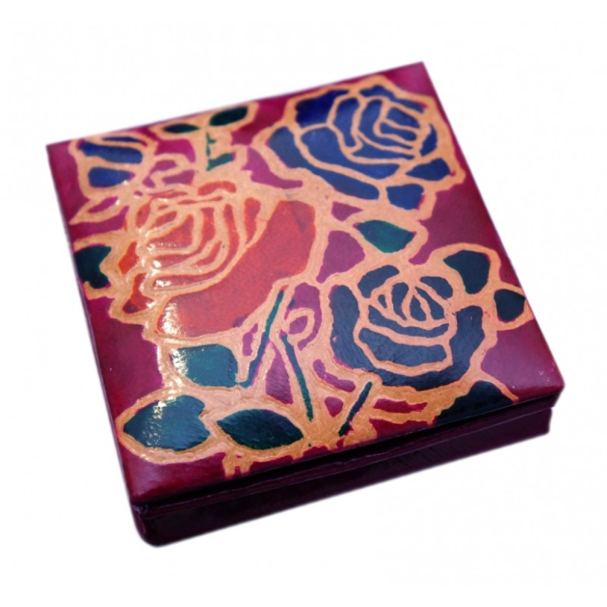 Гаманець шкіряний на кнопці Троянди Малиновий