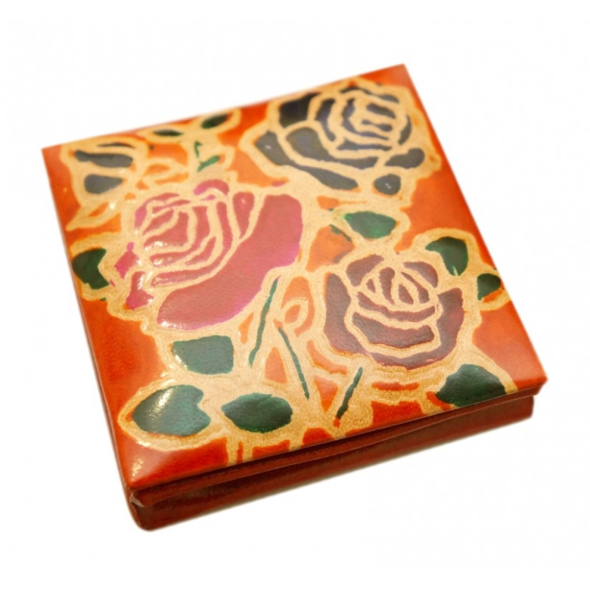 Гаманець шкіряний на кнопці Троянди Помаранчевий