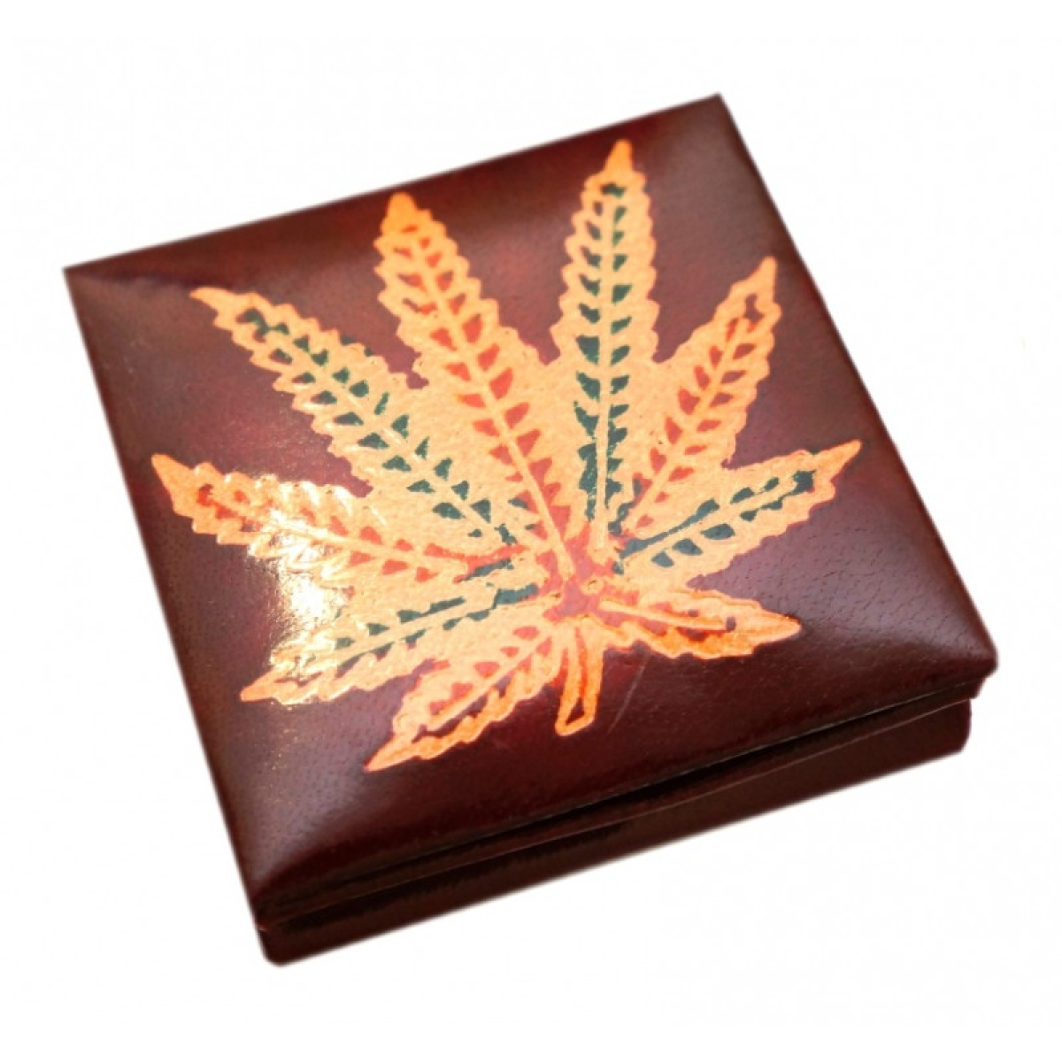 Гаманець шкіряний на кнопці Канабіс Бордовий