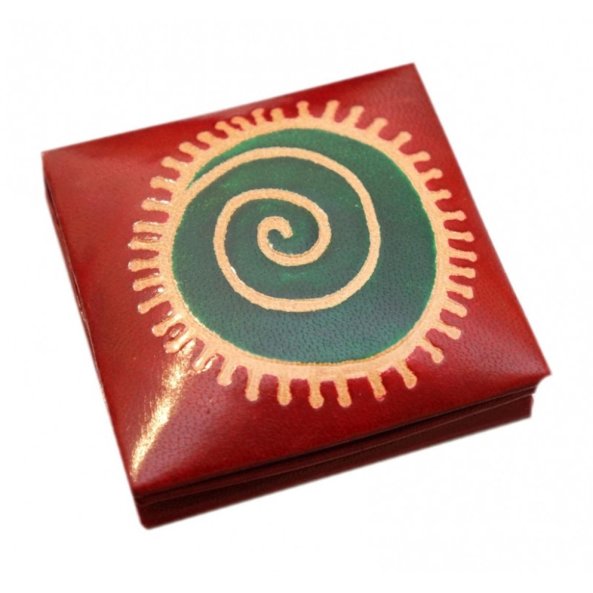 Гаманець шкіряний на кнопці Сонце Червоний