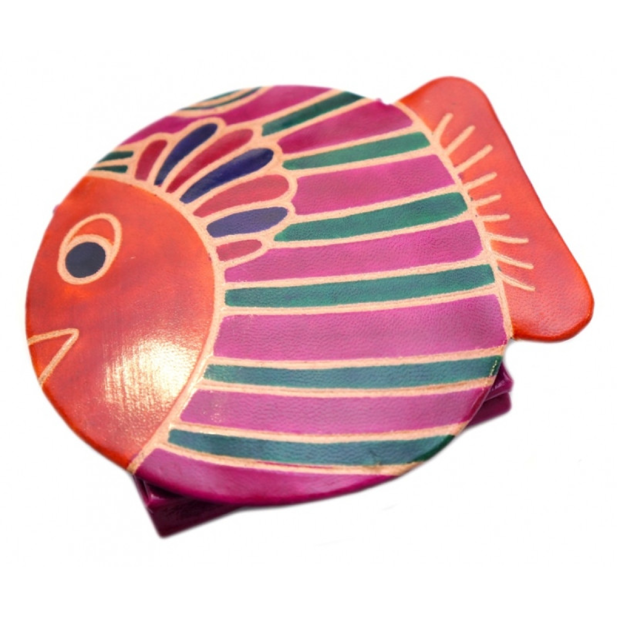 Гаманець шкіряний на кнопці ZOO Рибка Малиновий
