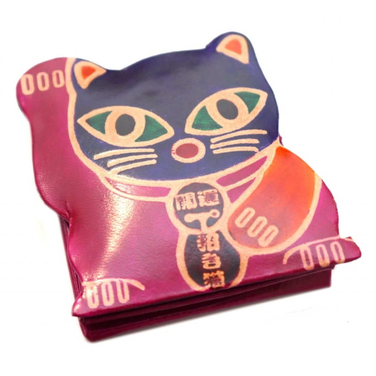 Гаманець шкіряний на кнопці ZOO Манекі Неко Малиновий