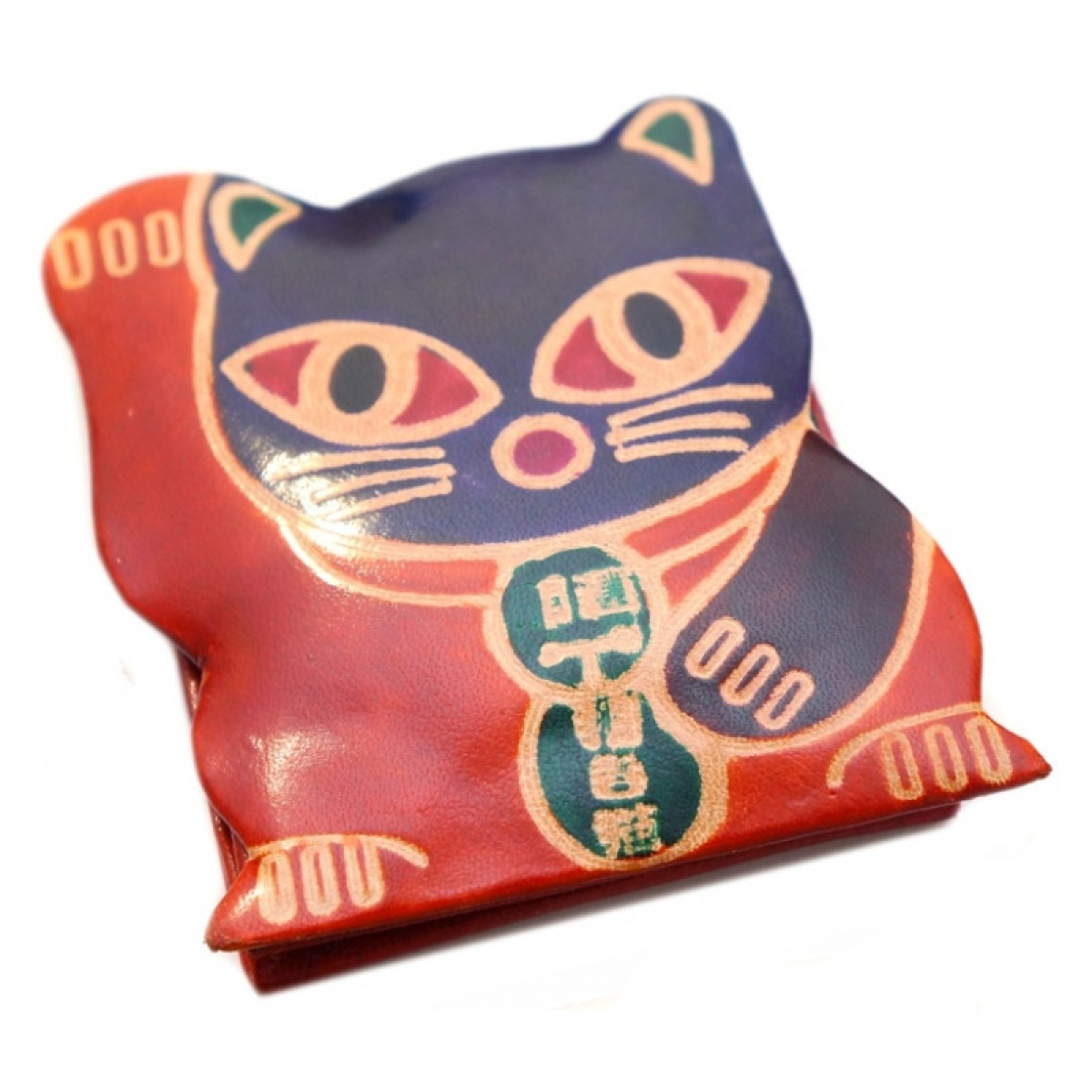 Гаманець шкіряний на кнопці ZOO Манекі Неко Помаранчевий