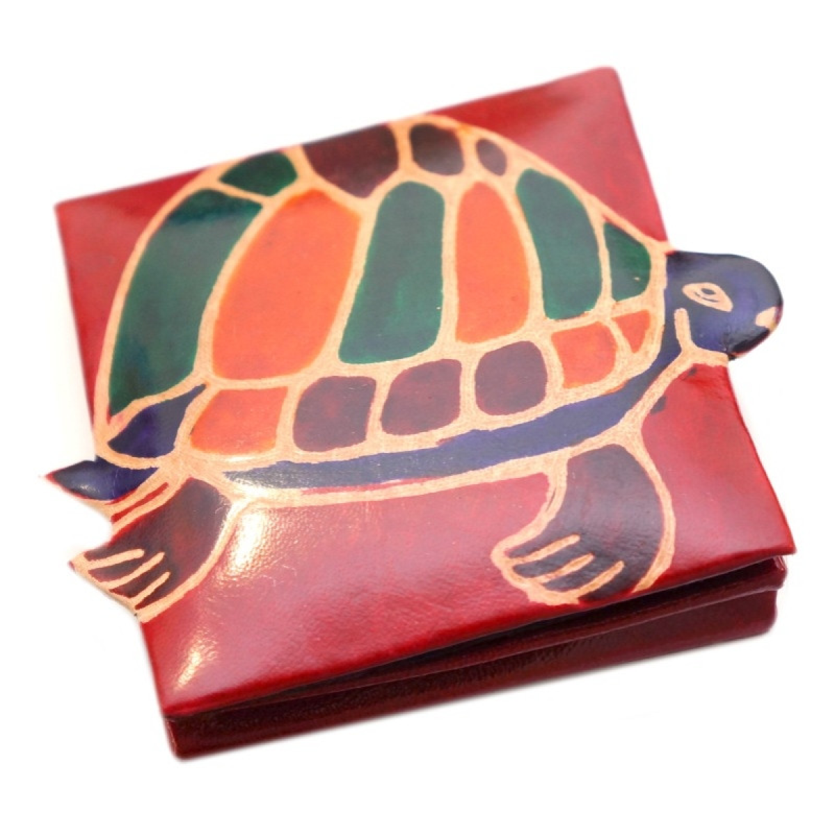 Гаманець шкіряний на кнопці ZOO Черепаха Червоний