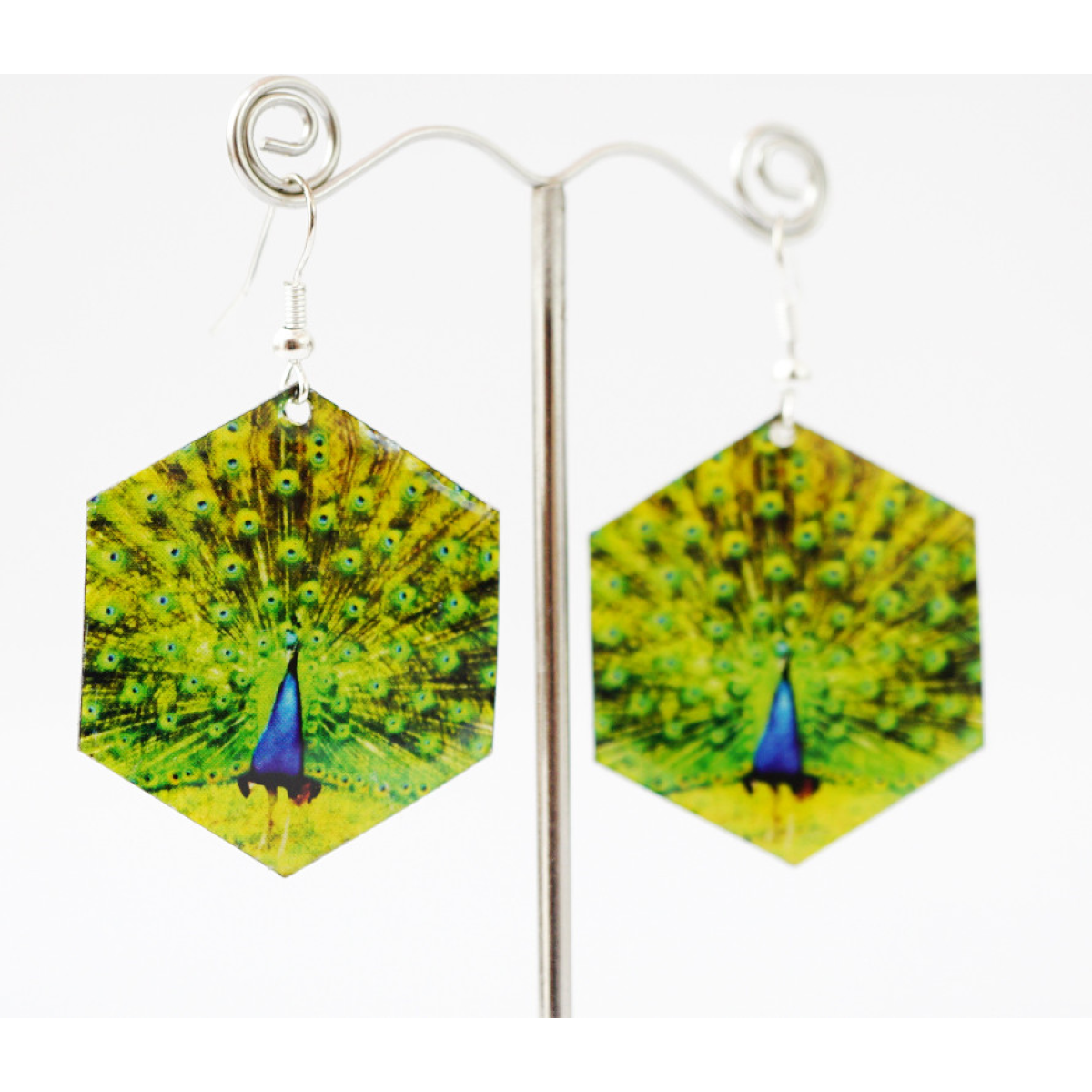 Сережки Хіпі Павич №1 Шестигранник